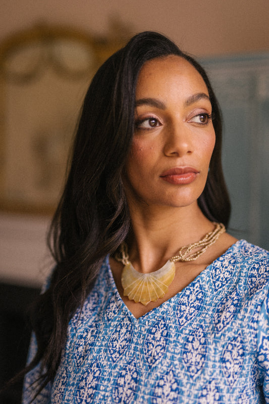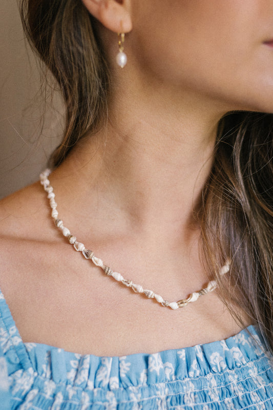 Bead Necklace with Shell Pendant - Sand (NCK 020)