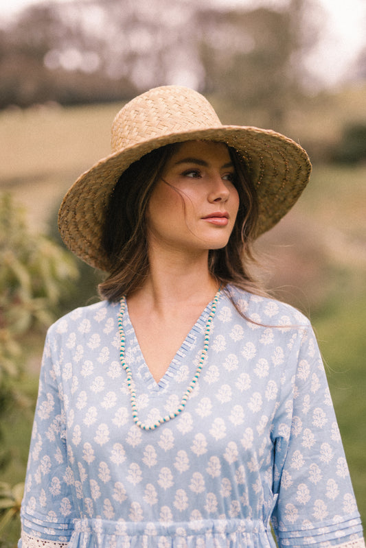 Bead Necklace with Shell Flower Pendant - Turquoise (NCK 022)
