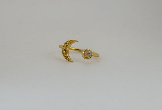 Gold Vermeil Moon Ring in Rainbow Moonstone