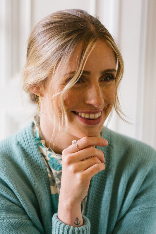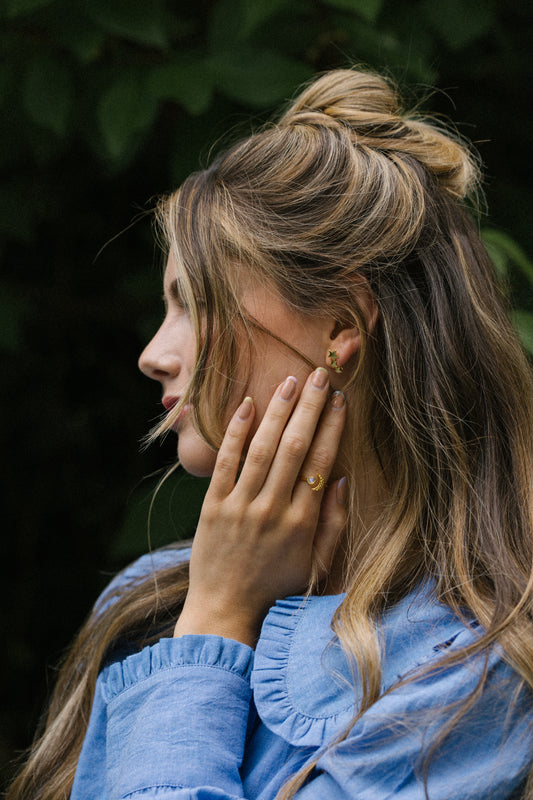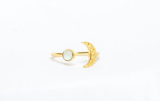 Gold Vermeil Moon Ring in Aqua Chalcedony