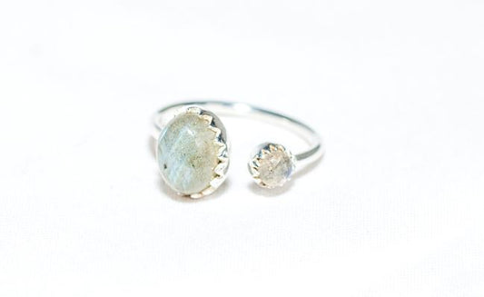 Sterling Silver Two Stone Ring in Labradorite & Pink Chalcedony