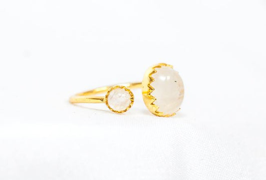 Gold Vermeil Two Stone Ring in Rainbow Moonstone