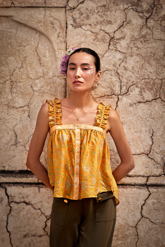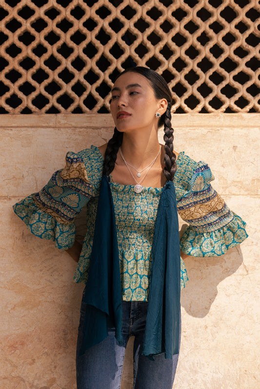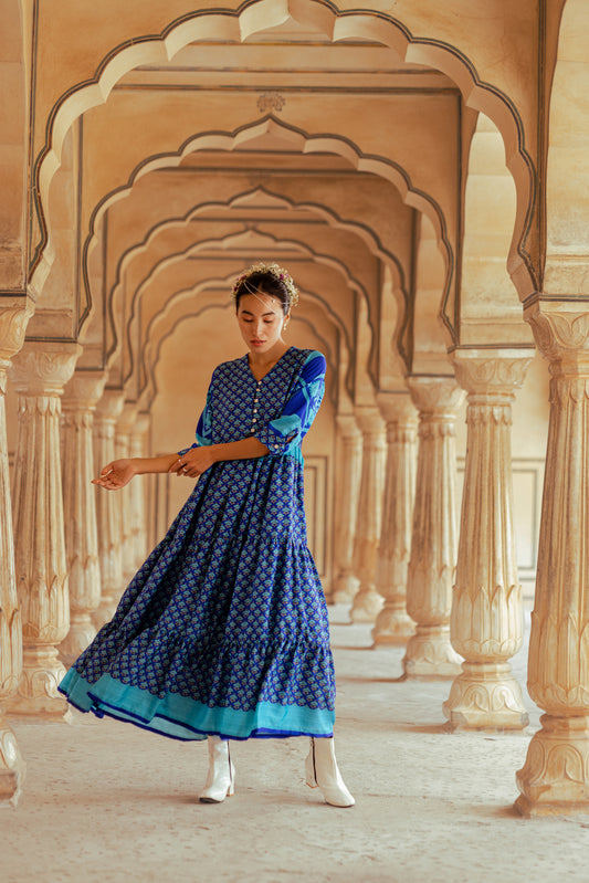 Lotus Necklace Gold -Gold Blue Chalcedony