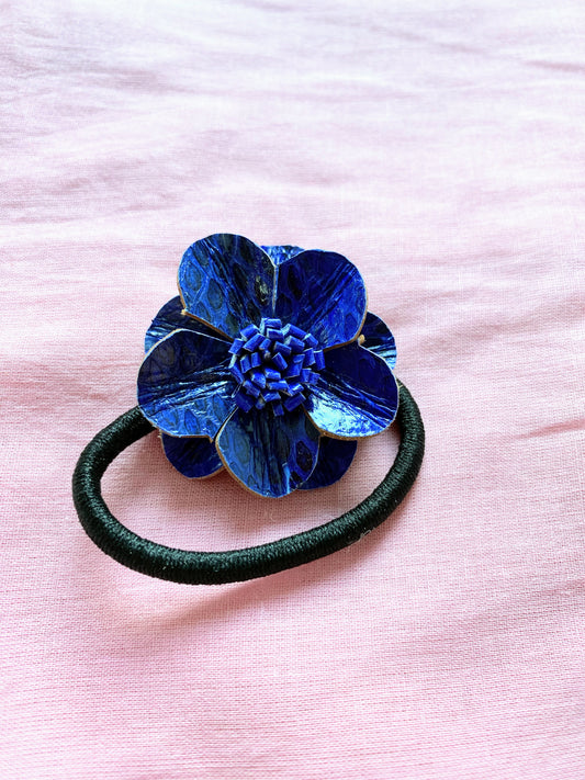 Leather Flower Hair Bobble - Blue (HRC 100)