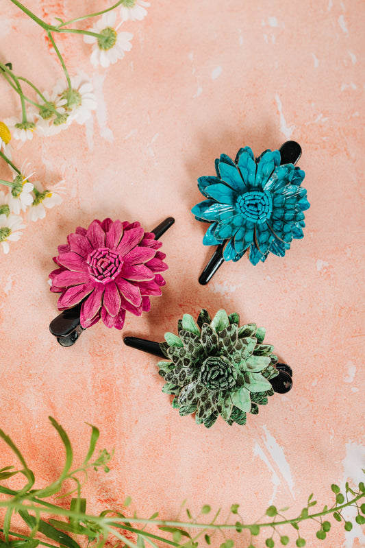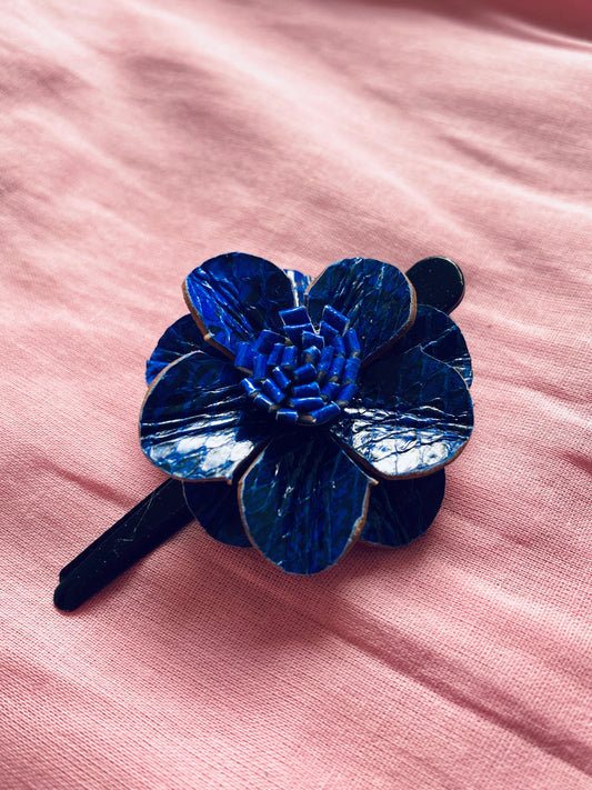 Leather Flower Hair Clip - Turquoise (HRC 101)