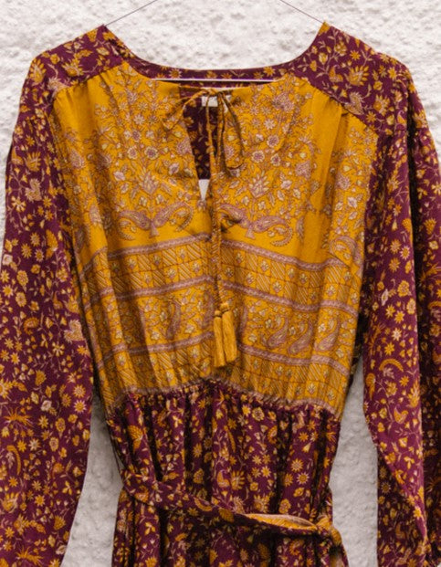 Lola Silk Dress XS - Purple/Blue Floral Paisley Print 083