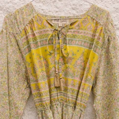 Lola Silk Dress XS - Golden Green Floral Print 085