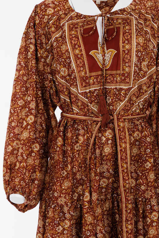 Prairie V-neck Silk Dress XS - Copper/Red Print 0022