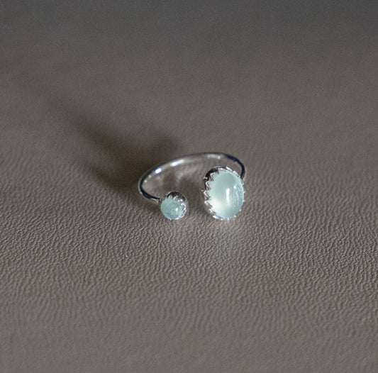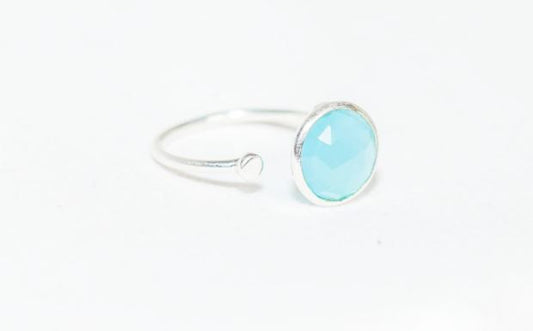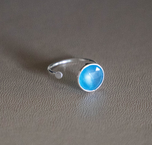 Sterling Silver Ring with Disc in Aqua Chalcedony
