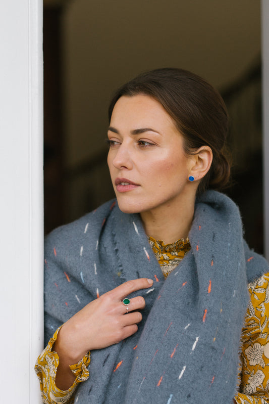 Sterling Silver Ring with Disc in Blue Chalcedony