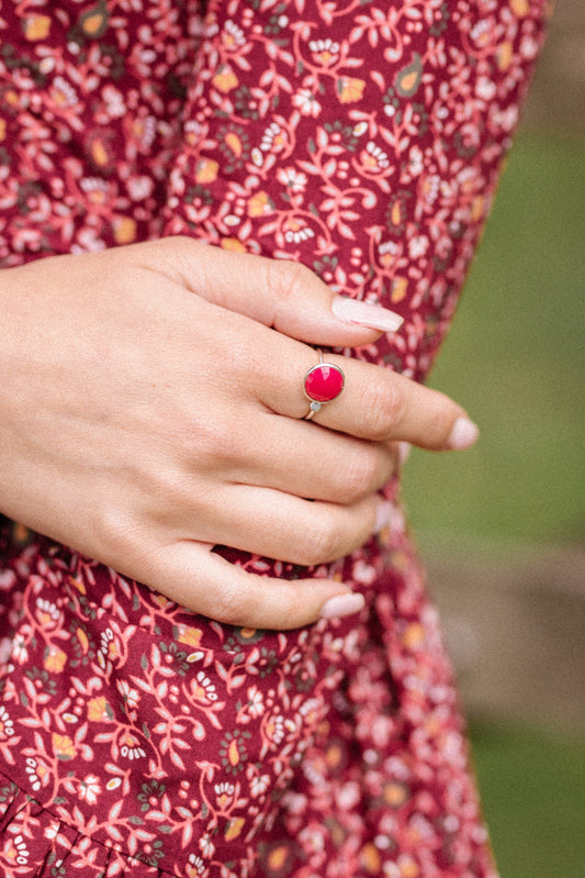 Sterling Silver Ring with Disc in Pink Chalcedony