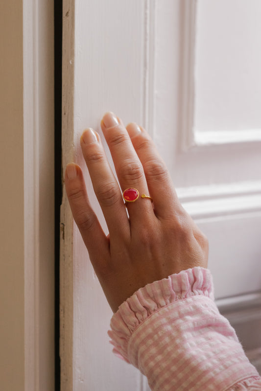 Gold Vermeil Ring with Disc in Pink Chalcedony