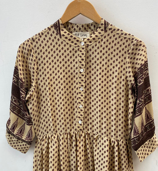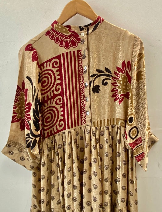 Prairie Round Neck Silk Dress S - 016