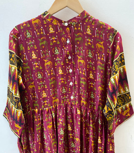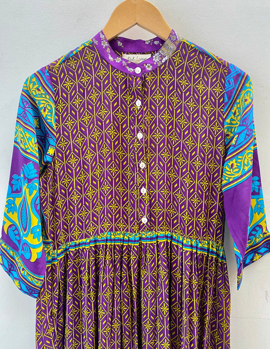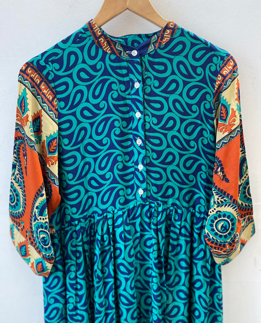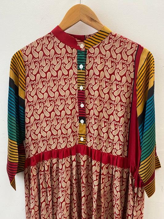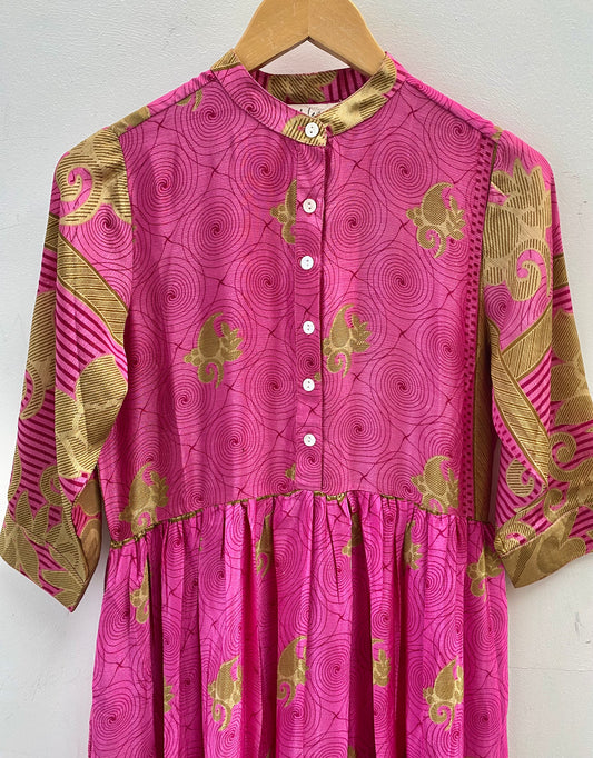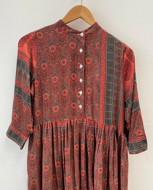 Prairie Round Neck Silk Dress XS - 024
