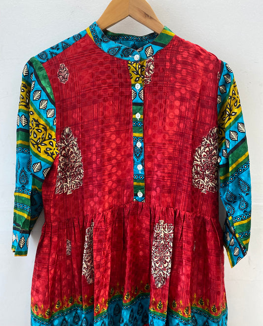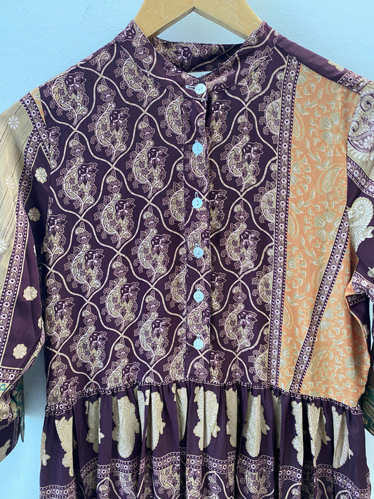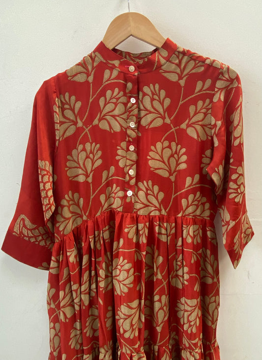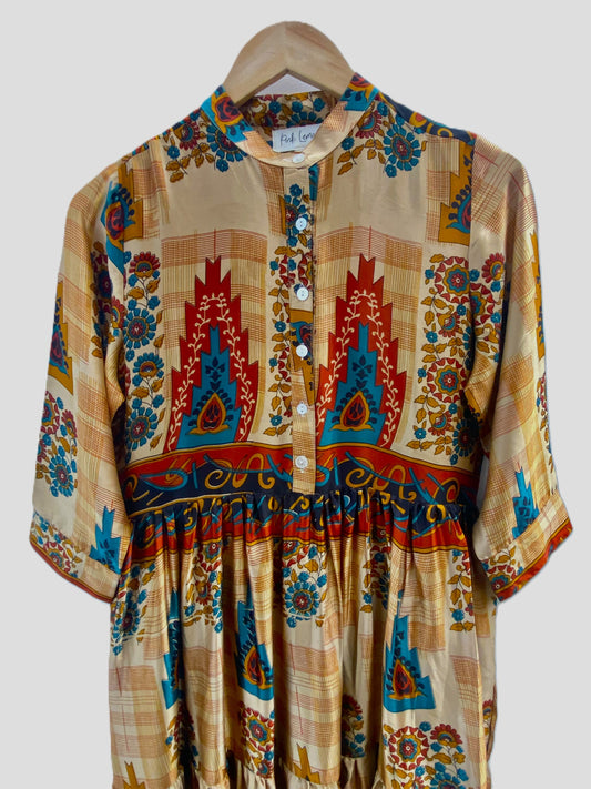 Prairie Round Neck Silk Dress S - 015