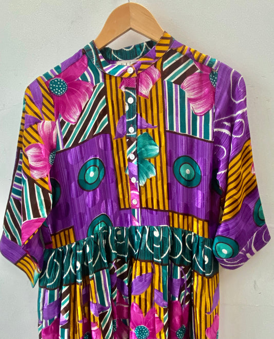 Prairie Round Neck Silk Dress XL - 001