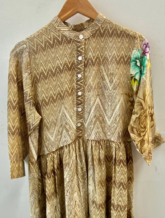 Prairie Round Neck Silk Dress M - 080