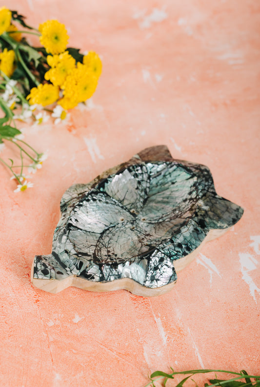 Shell & Wooden Turtle Soap/Trinket Dish - Mother of Pearl (SWT 070)