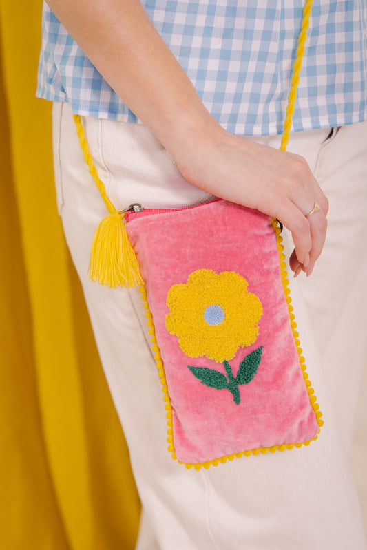 Velvet Flower Glasses Pouch - Pink & Yellow