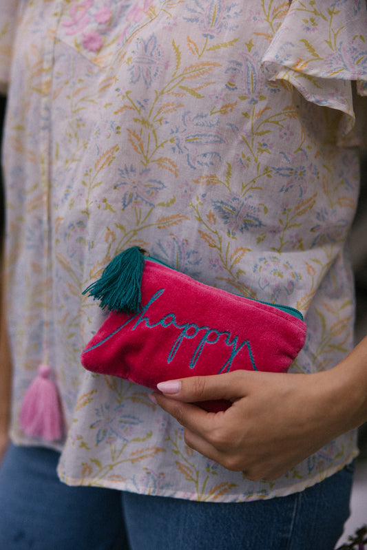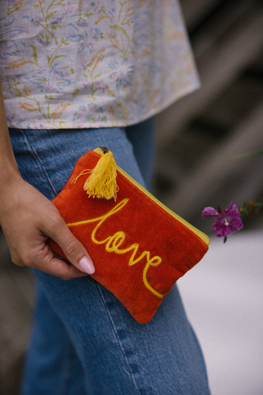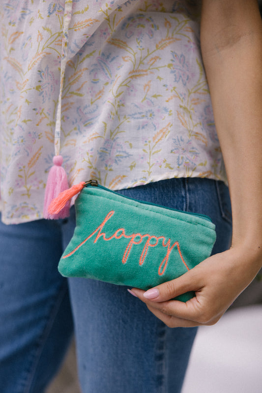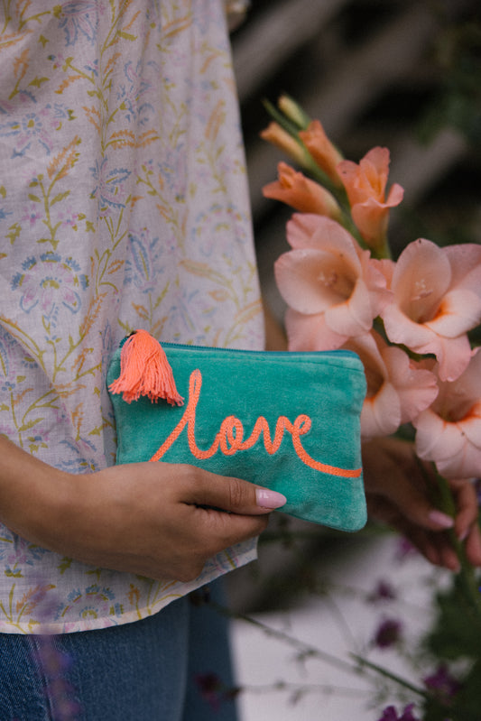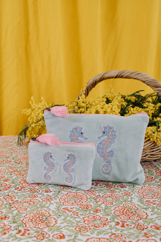 Velvet Seahorse Pouch in Yellow & Turquoise