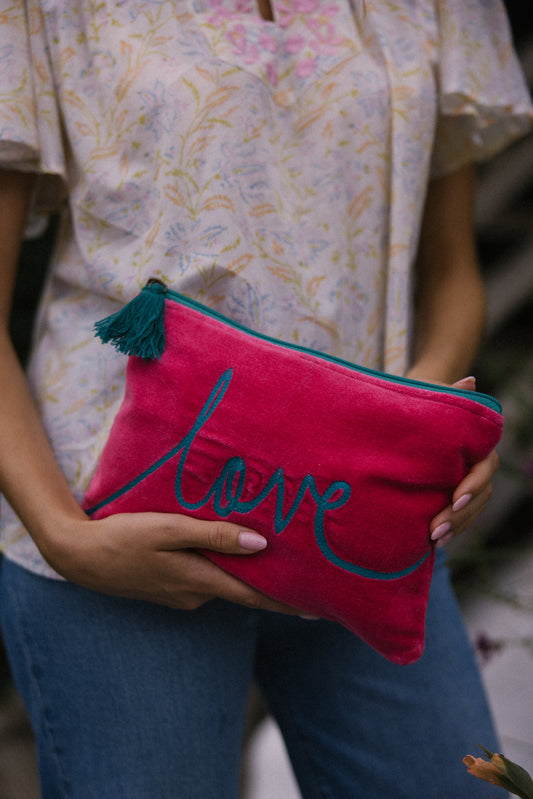 Velvet Flower Glasses Pouch - Aqua & Pink