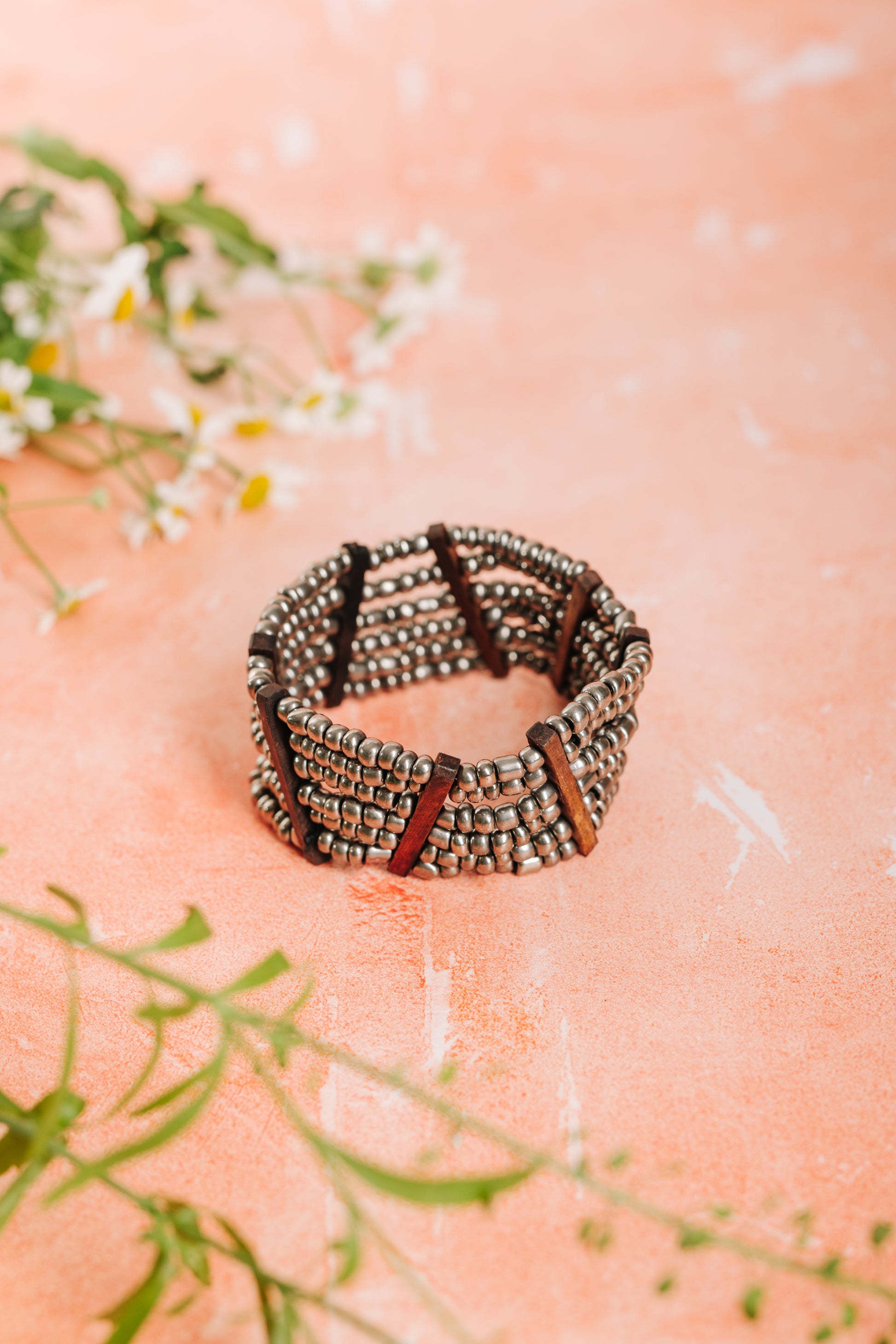 Bracelet Bead & Wood Combination - Grey (BCBRB 049)