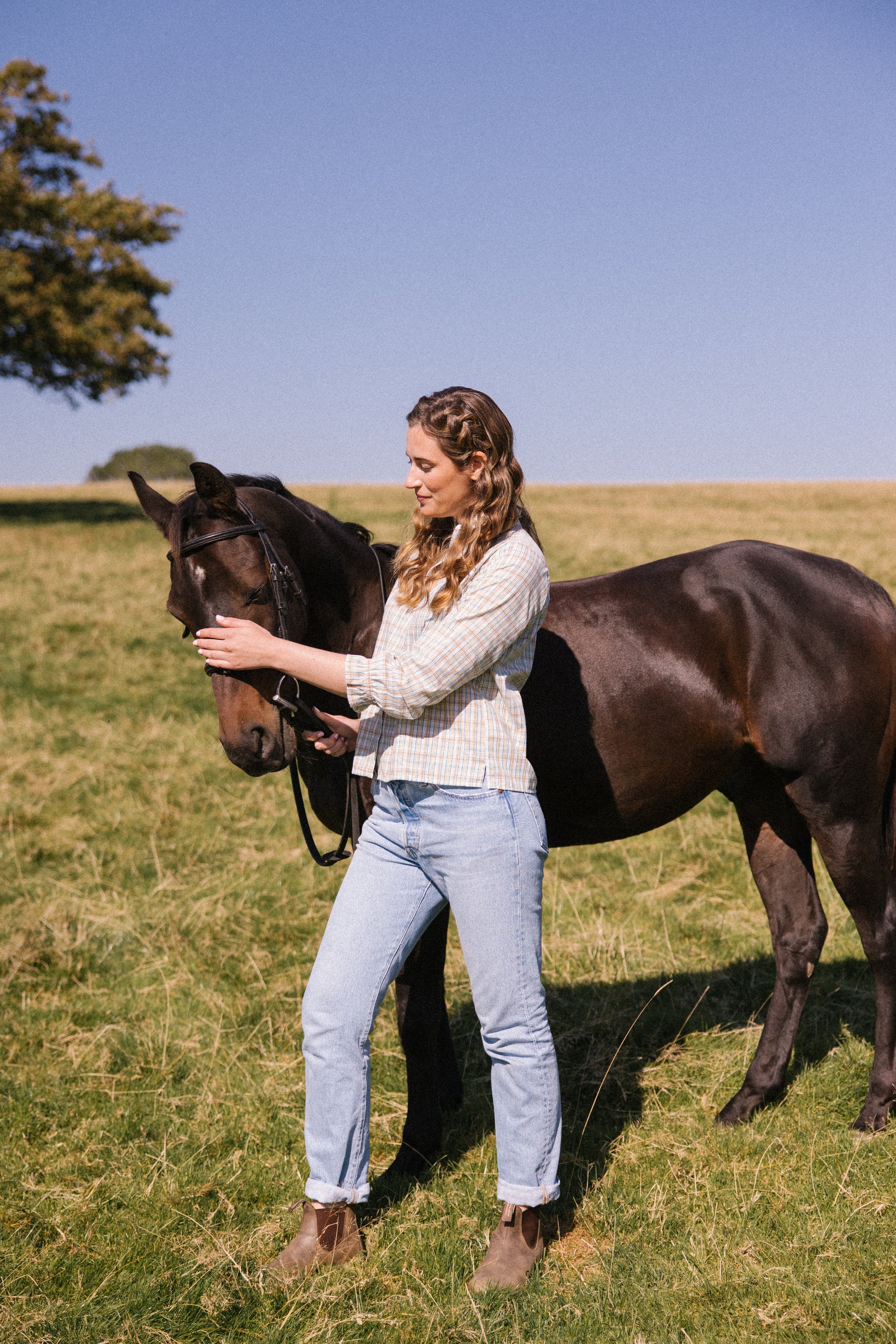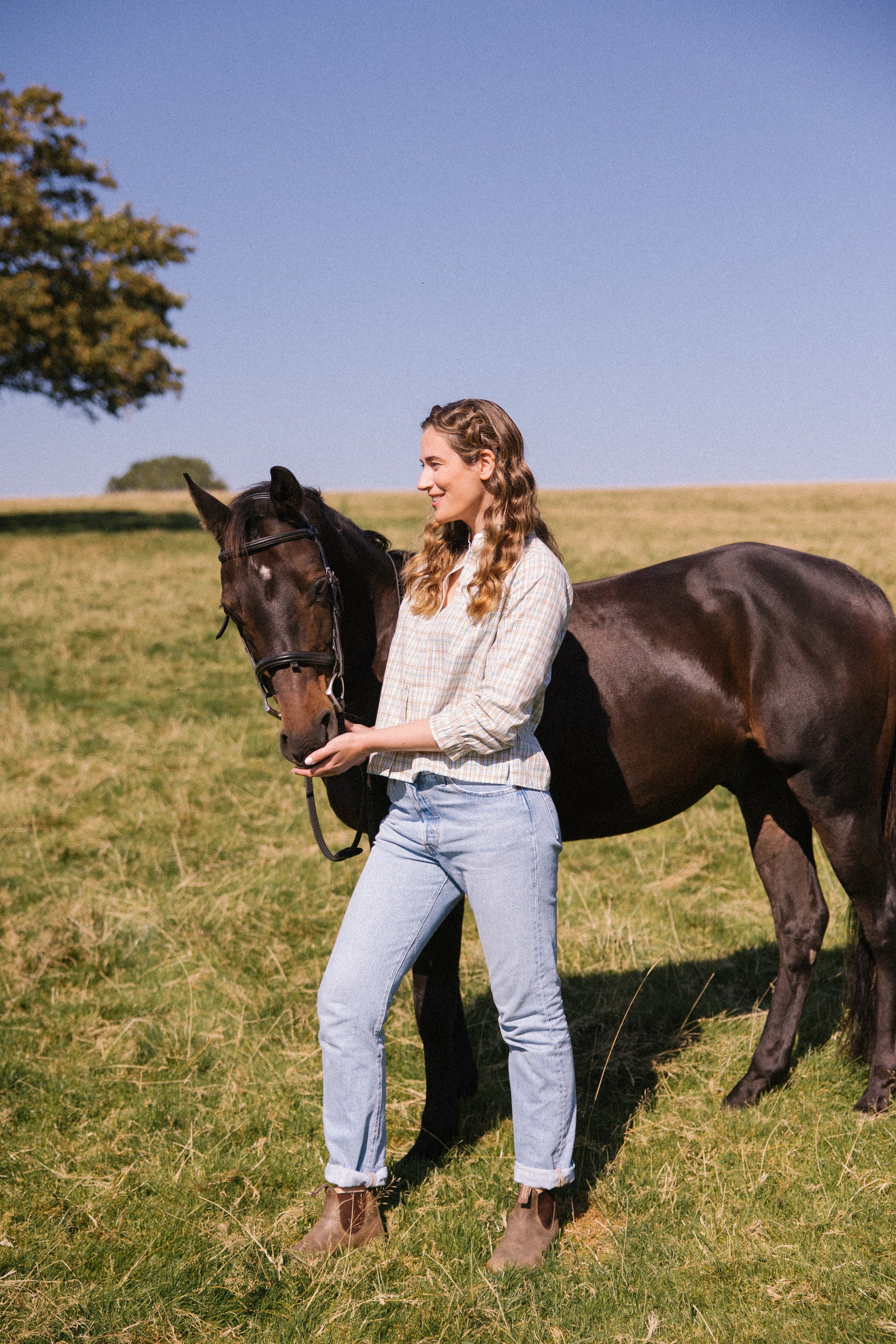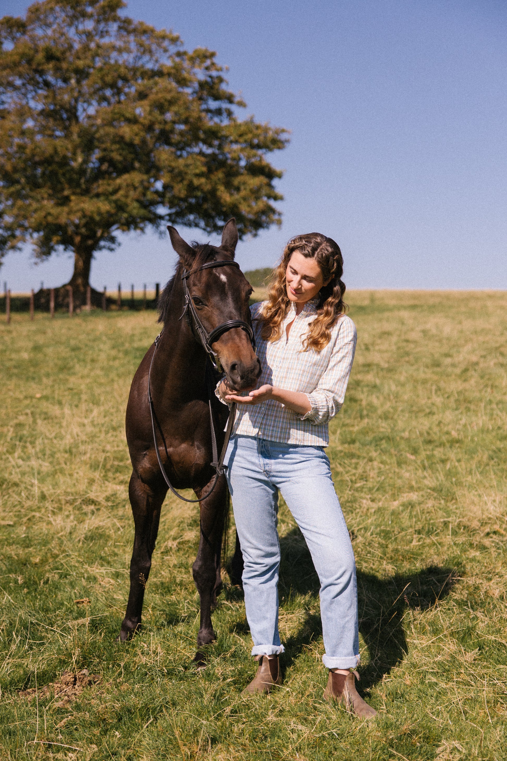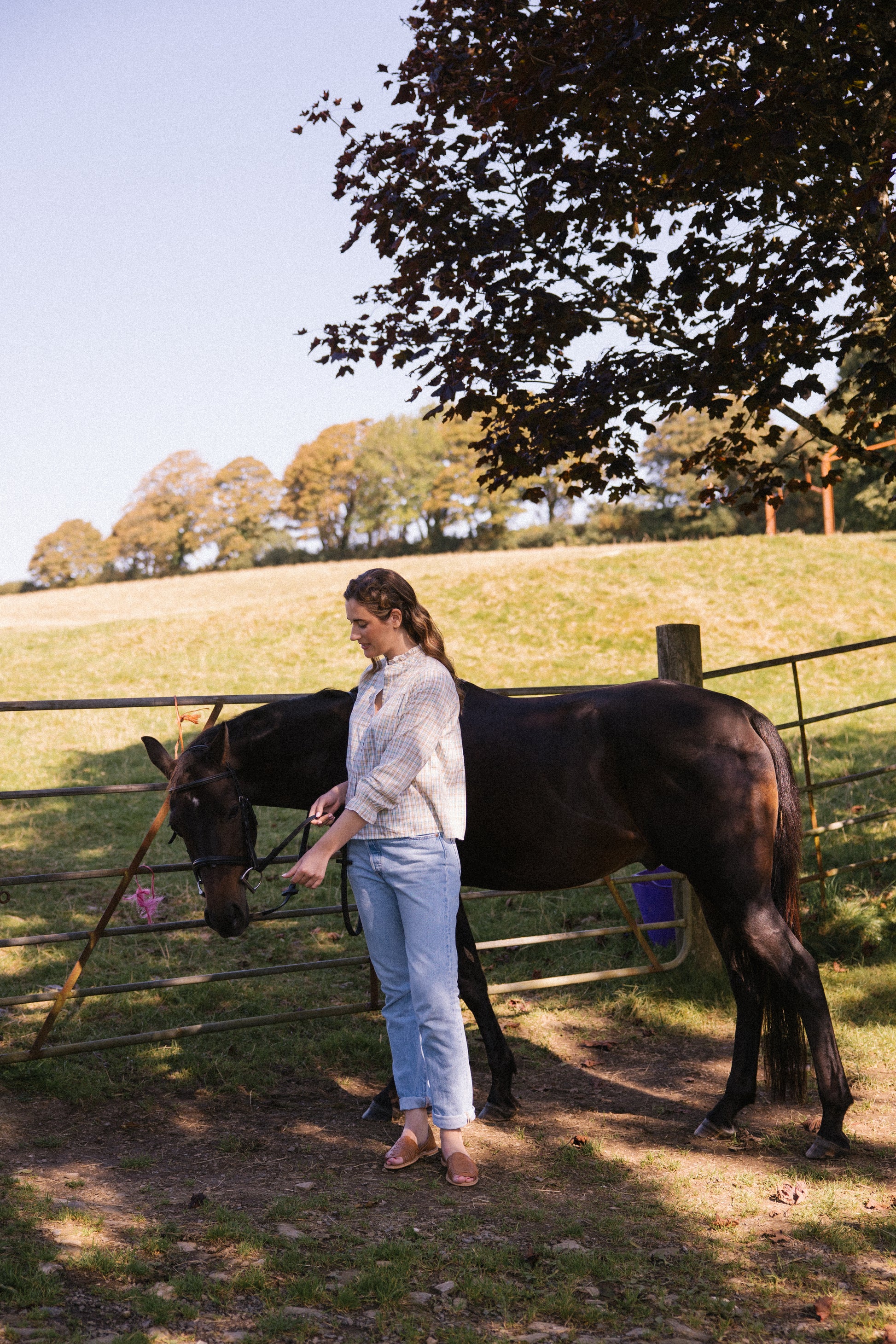 There are certain styles that you know you'll have for years to come, this blouse will be one of them. Its crafted from a lovely weight cotton with a check detail of blue and sandy stripes running in the weave.