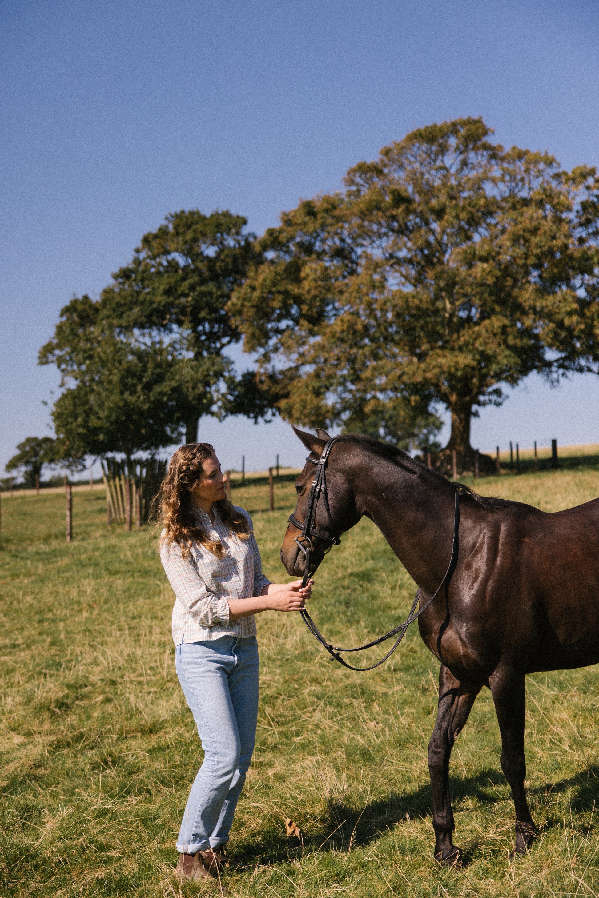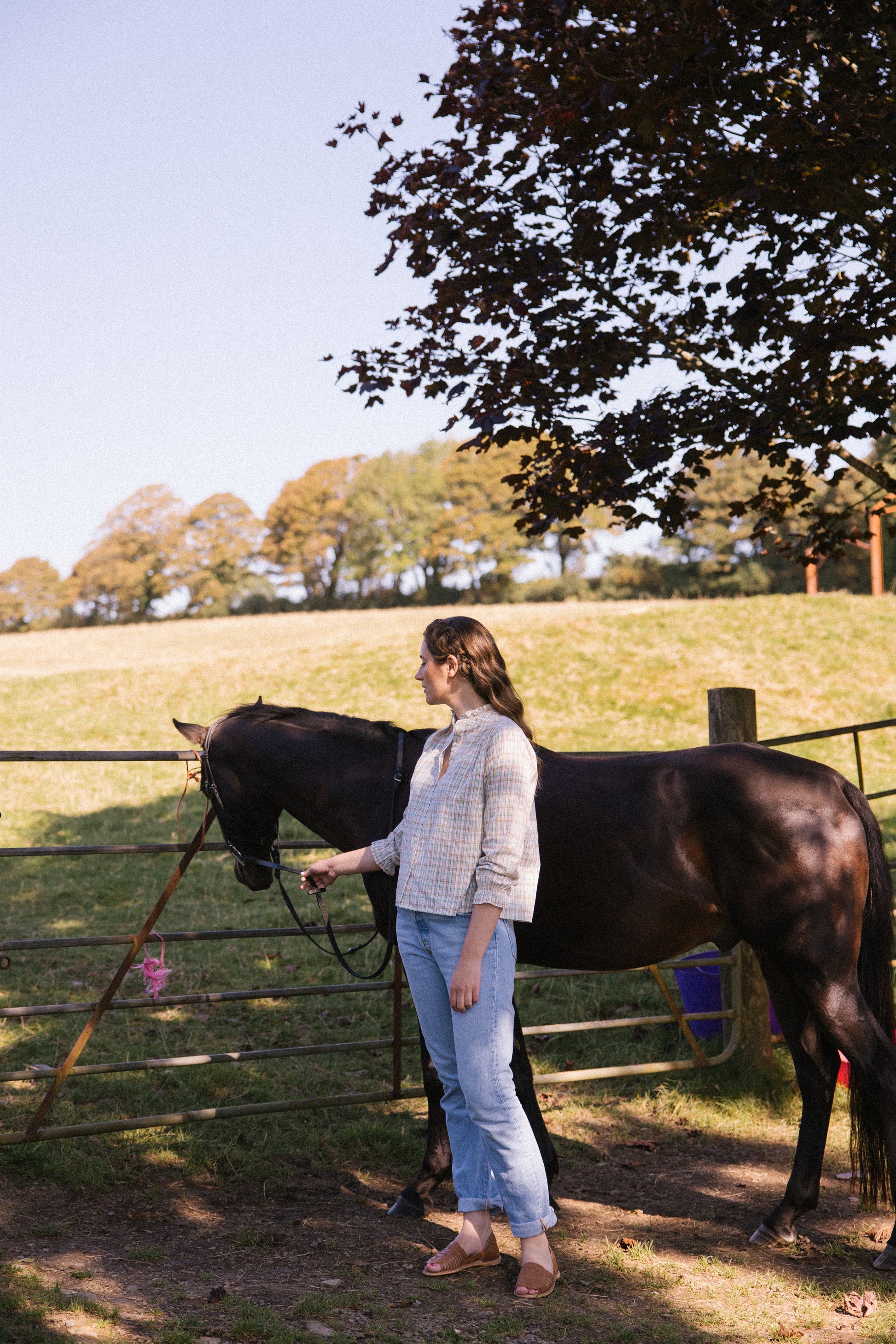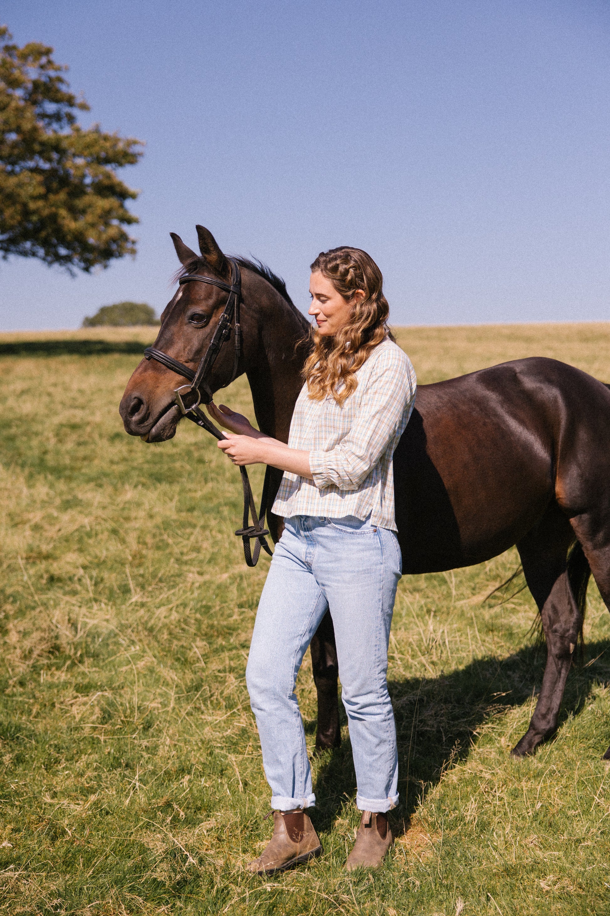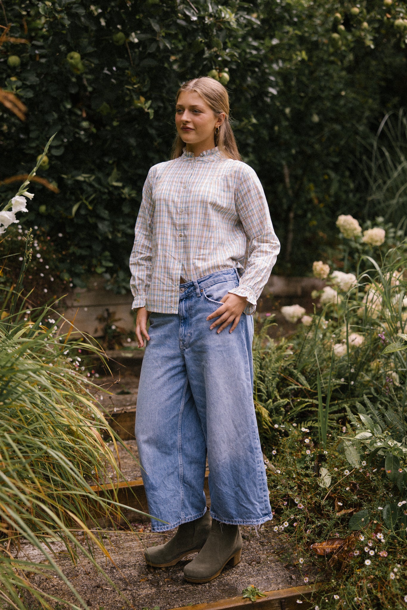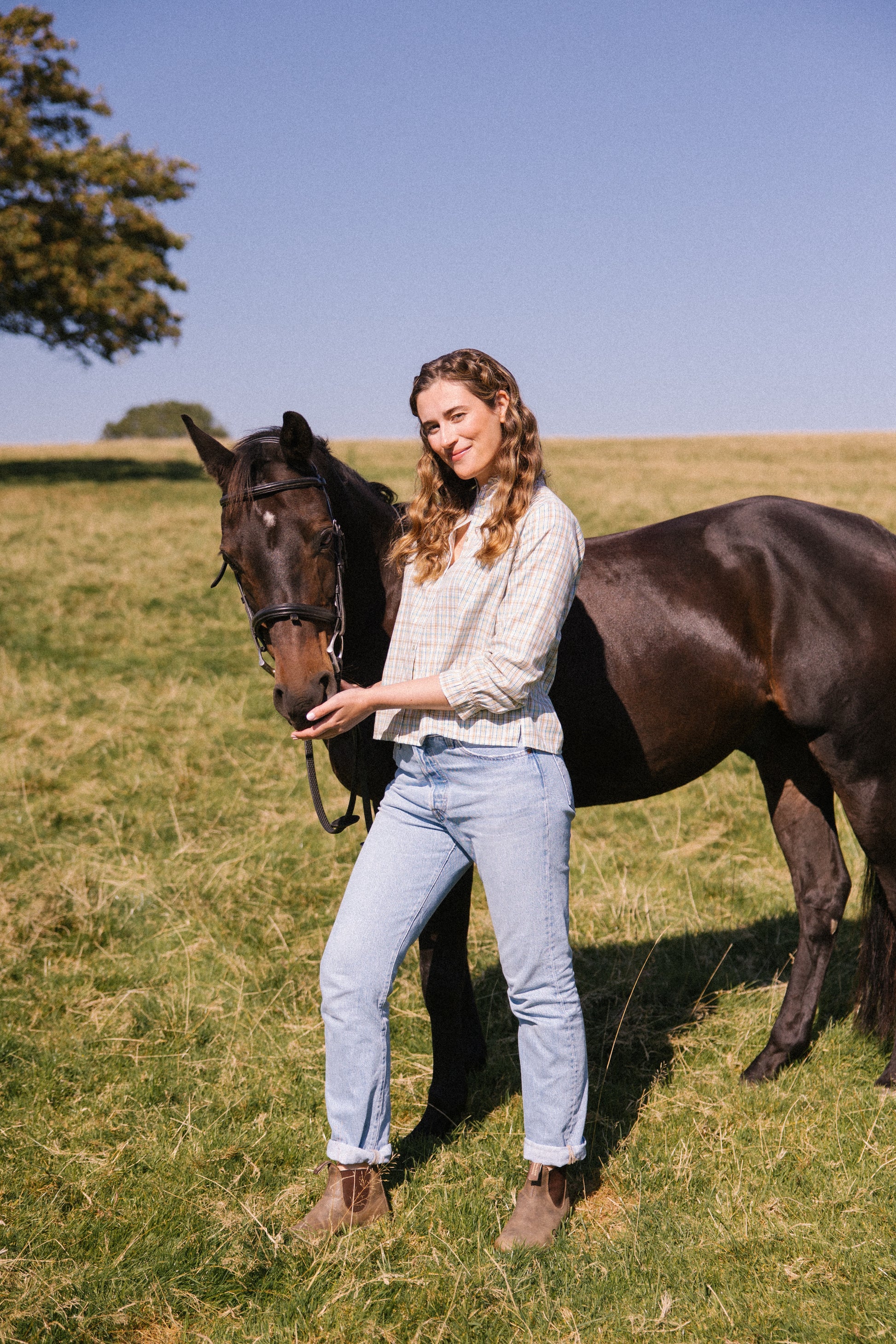 There are certain styles that you know you'll have for years to come, this blouse will be one of them. Its crafted from a lovely weight cotton with a check detail of blue and sandy stripes running in the weave.