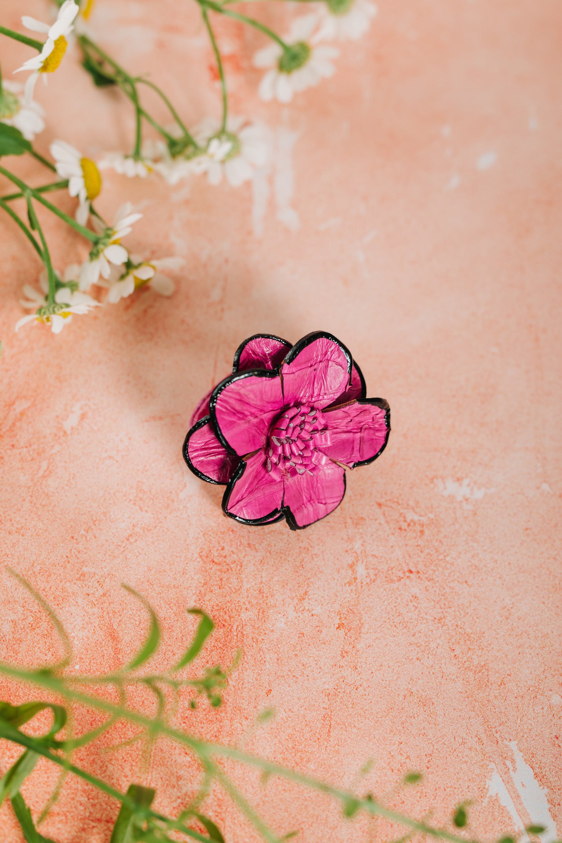 Daisy Leather Flower Adjustable Ring - Pink (RING 106)