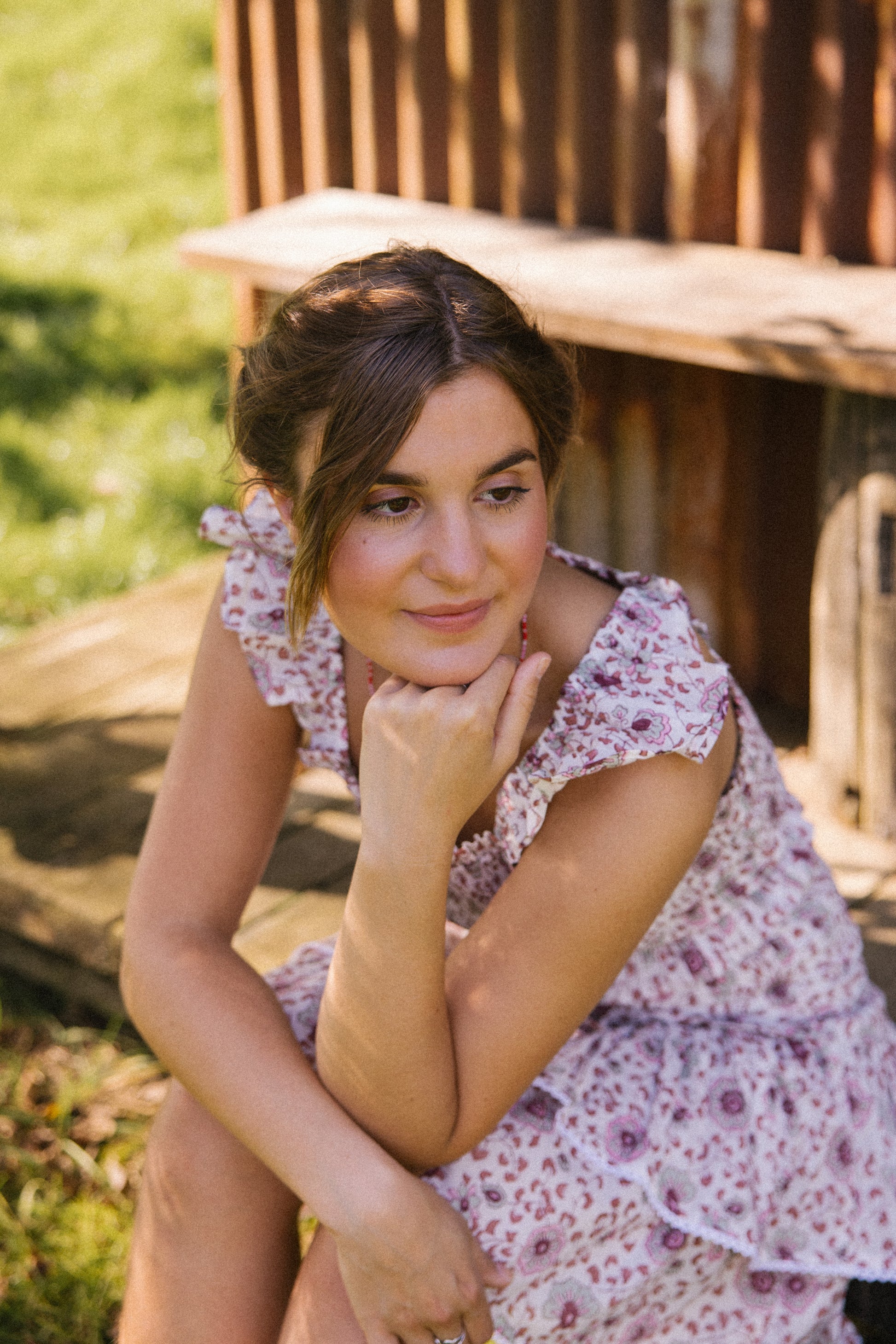 Mona is hand screen printed in our own exclusive floral print in soft earth tones.