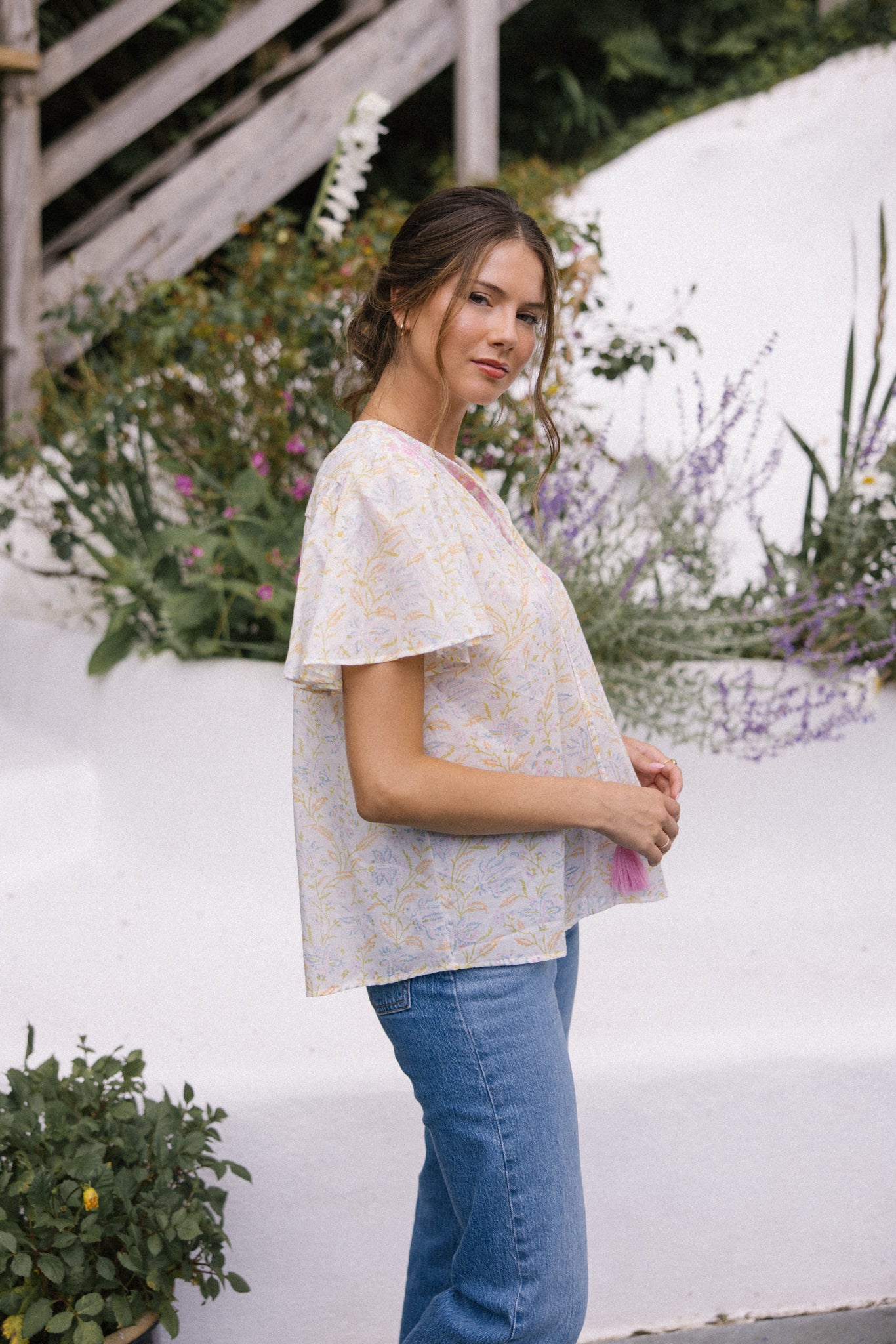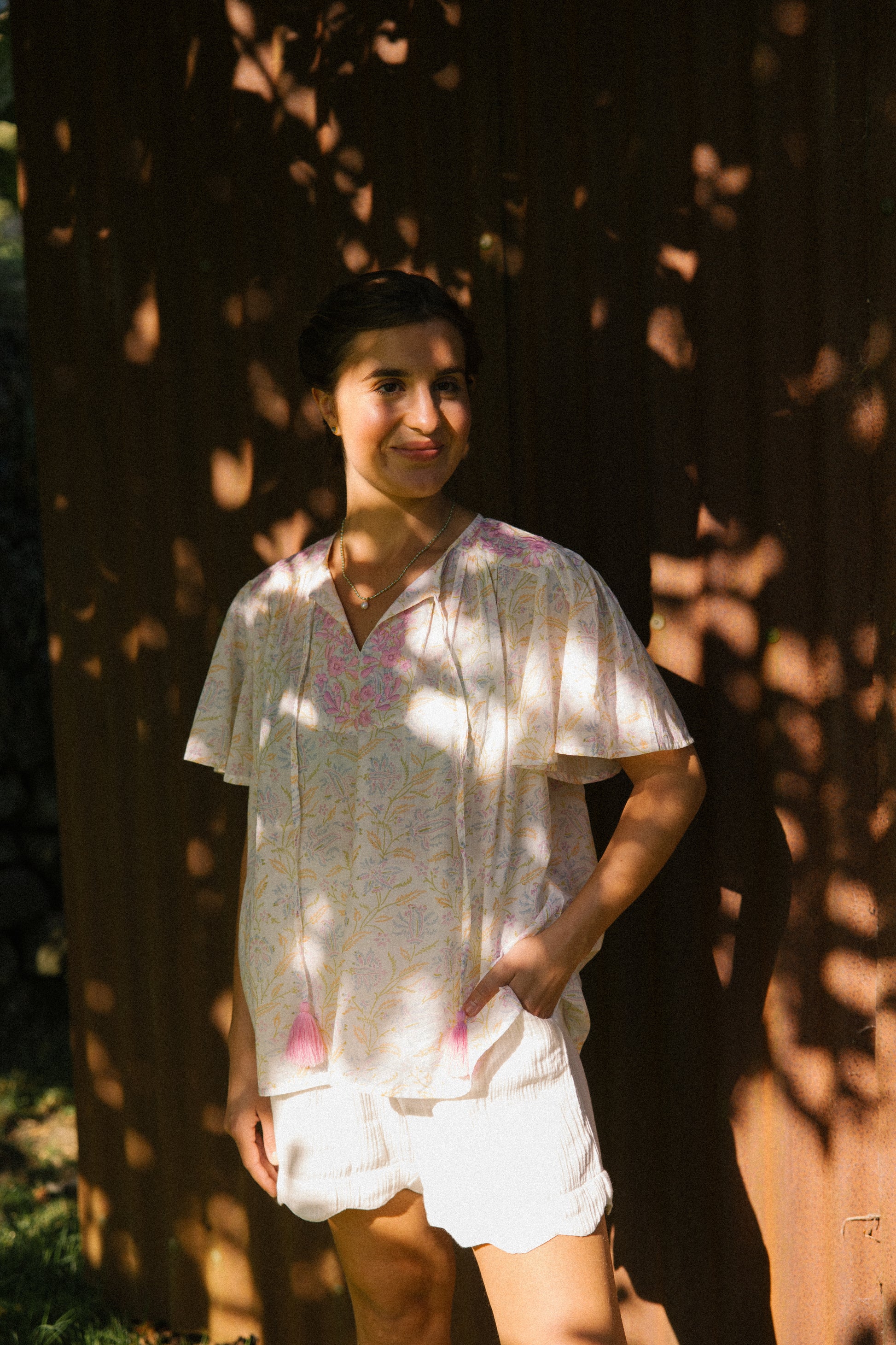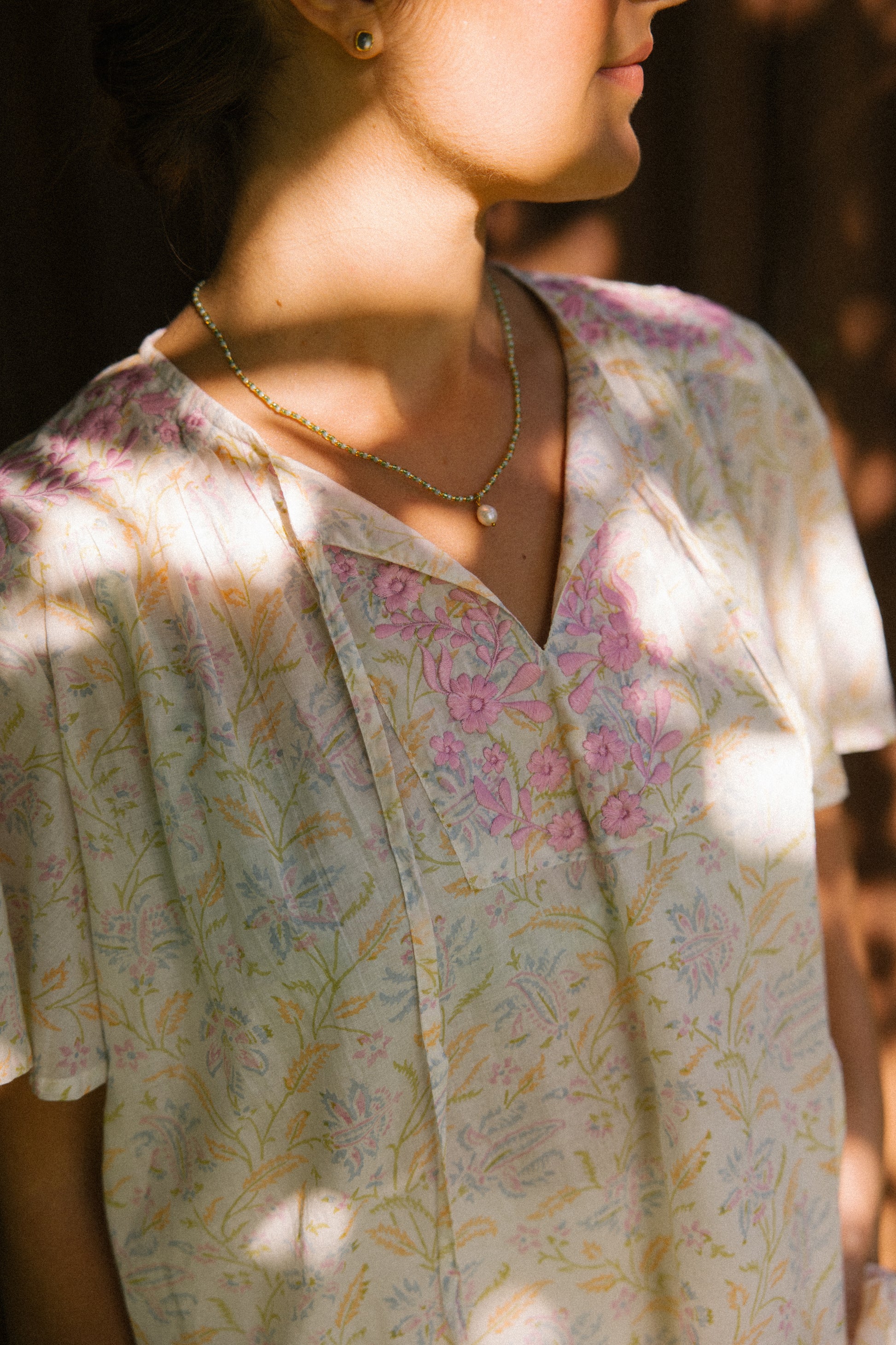 Lolita exudes charm and elegance with delicate embroidery details on the shoulders and front yoke, she looks great worn with jeans, linen pants and skirts /shorts alike, she can be dressed up or down to suit the occasion. It has a swing shape that can be worn loose or tucked in. Super versatile & flattering .