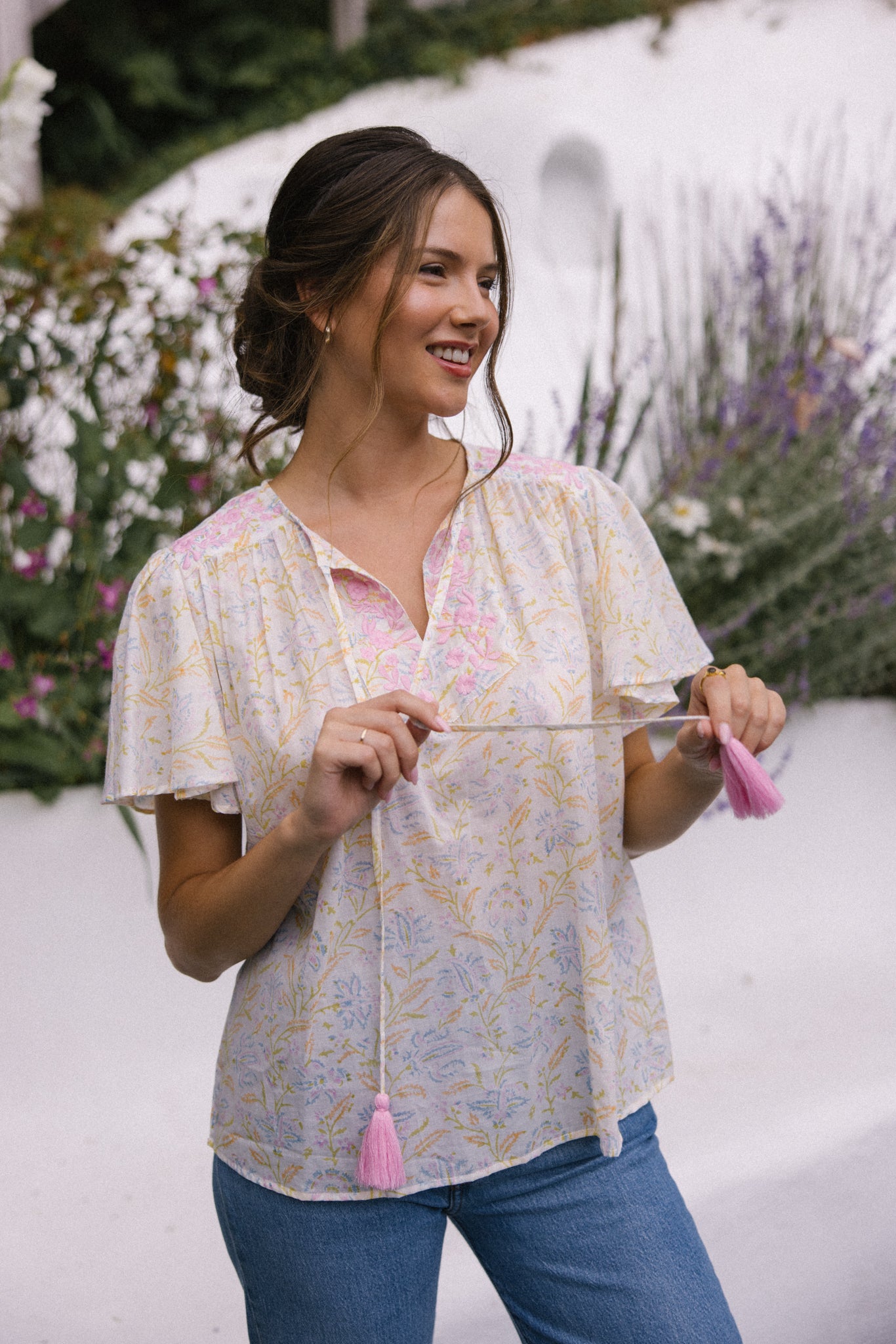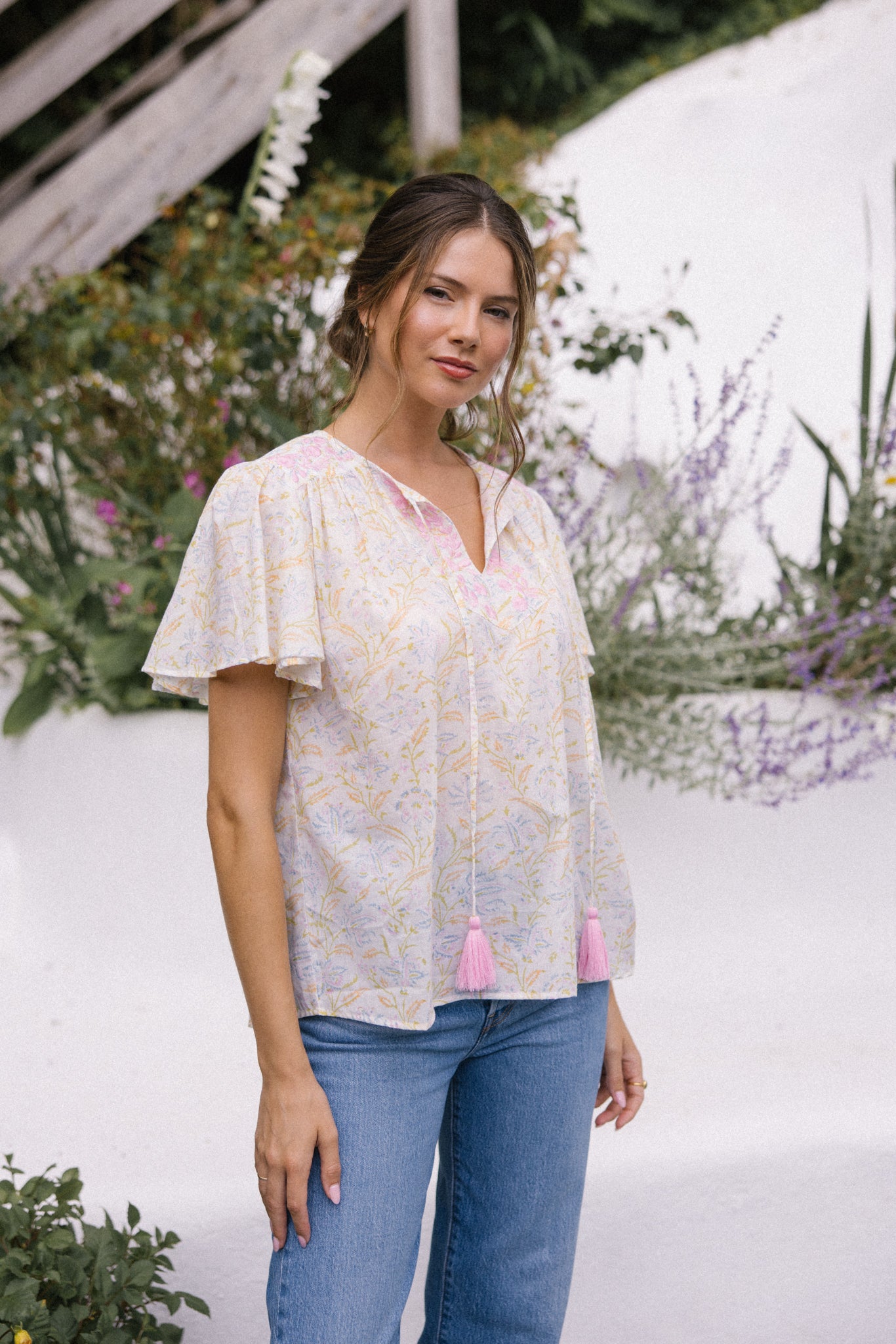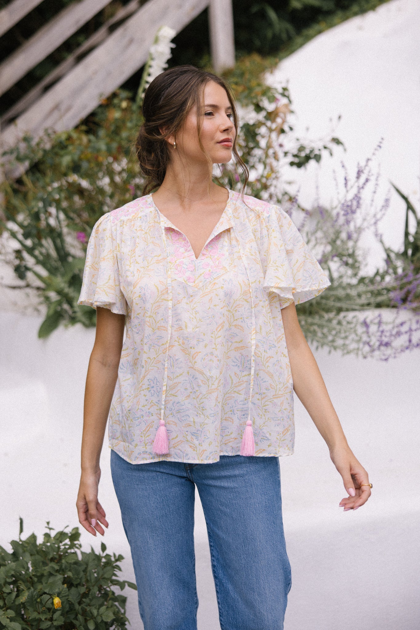 Lolita exudes charm and elegance with delicate embroidery details on the shoulders and front yoke, she looks great worn with jeans, linen pants and skirts /shorts alike, she can be dressed up or down to suit the occasion. It has a swing shape that can be worn loose or tucked in. Super versatile & flattering .