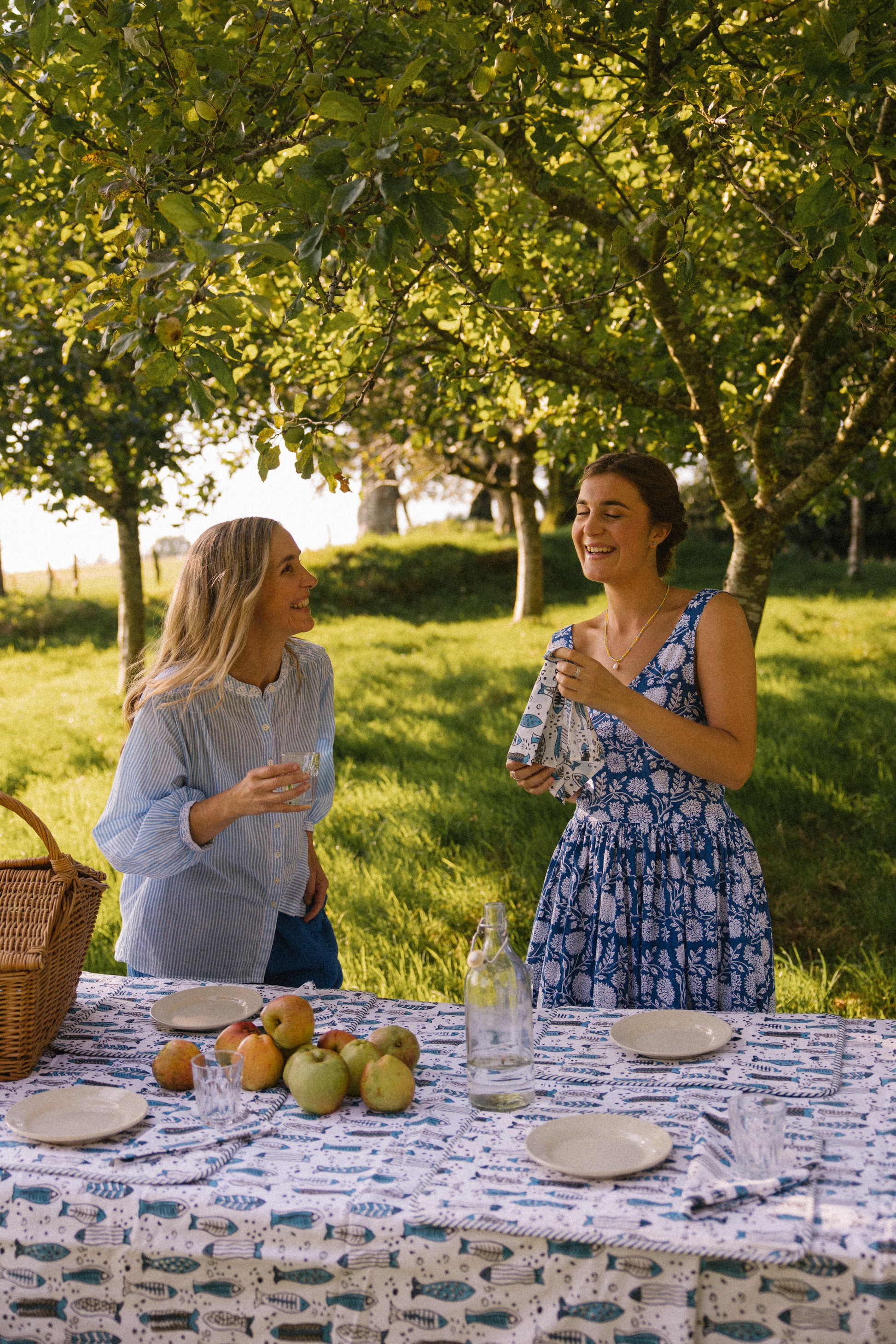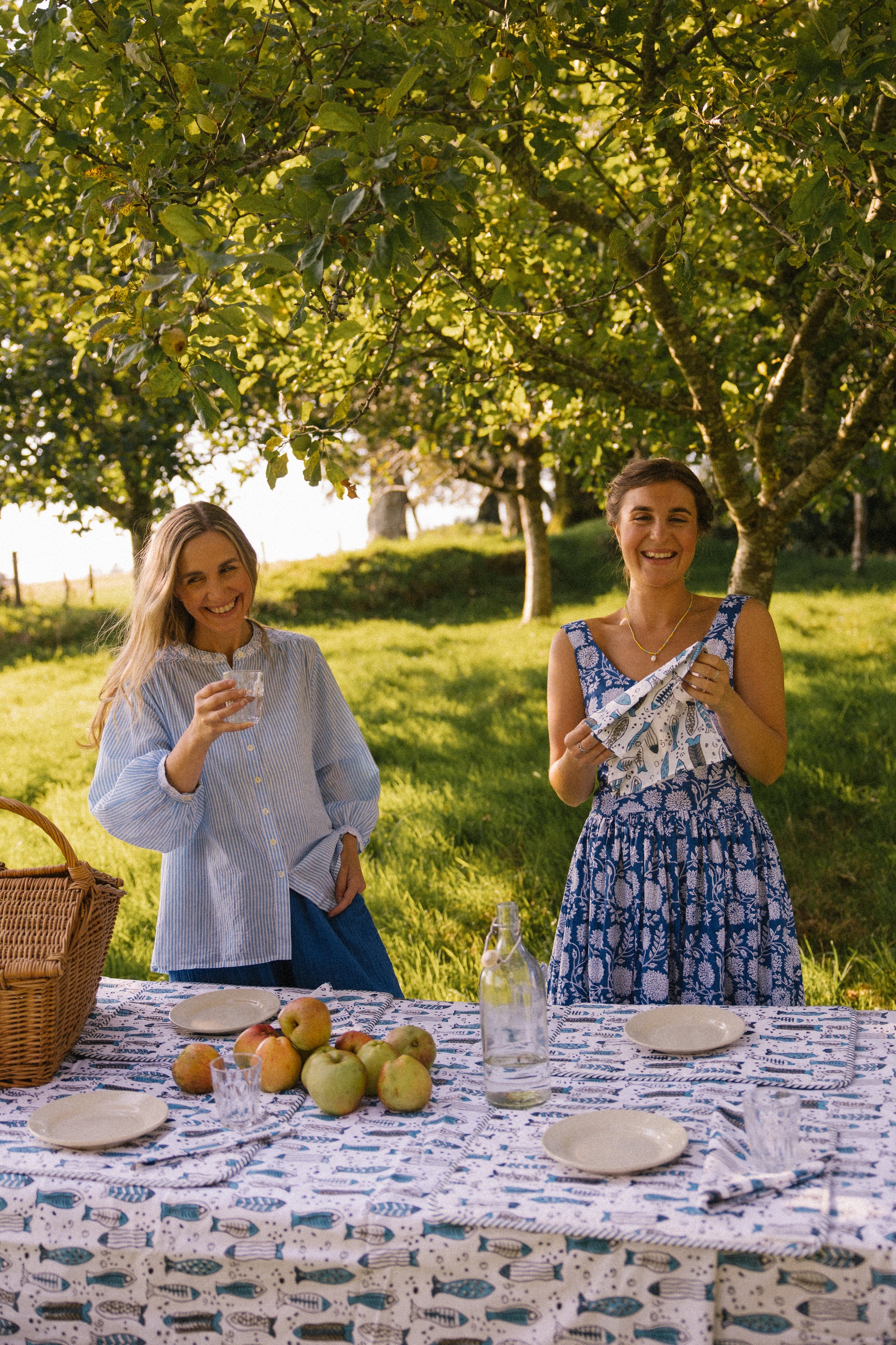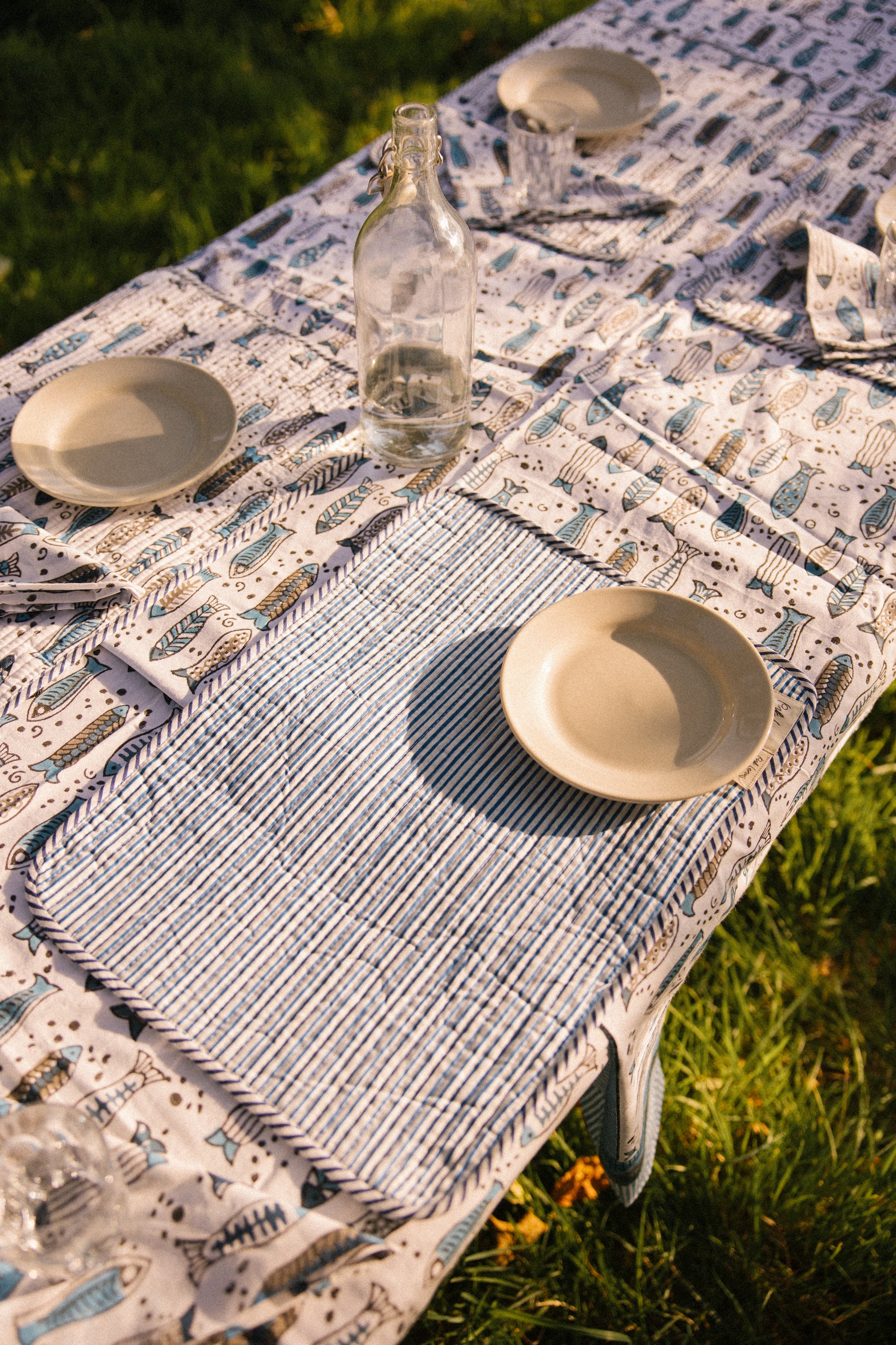 Our napkins are the perfect finishing touch to table spreads or for taking on summer picnics. Pair with our block printed tablecloths and placemats. Crafted from soft cotton and featuring a delightful flowing fish design in blue tones.