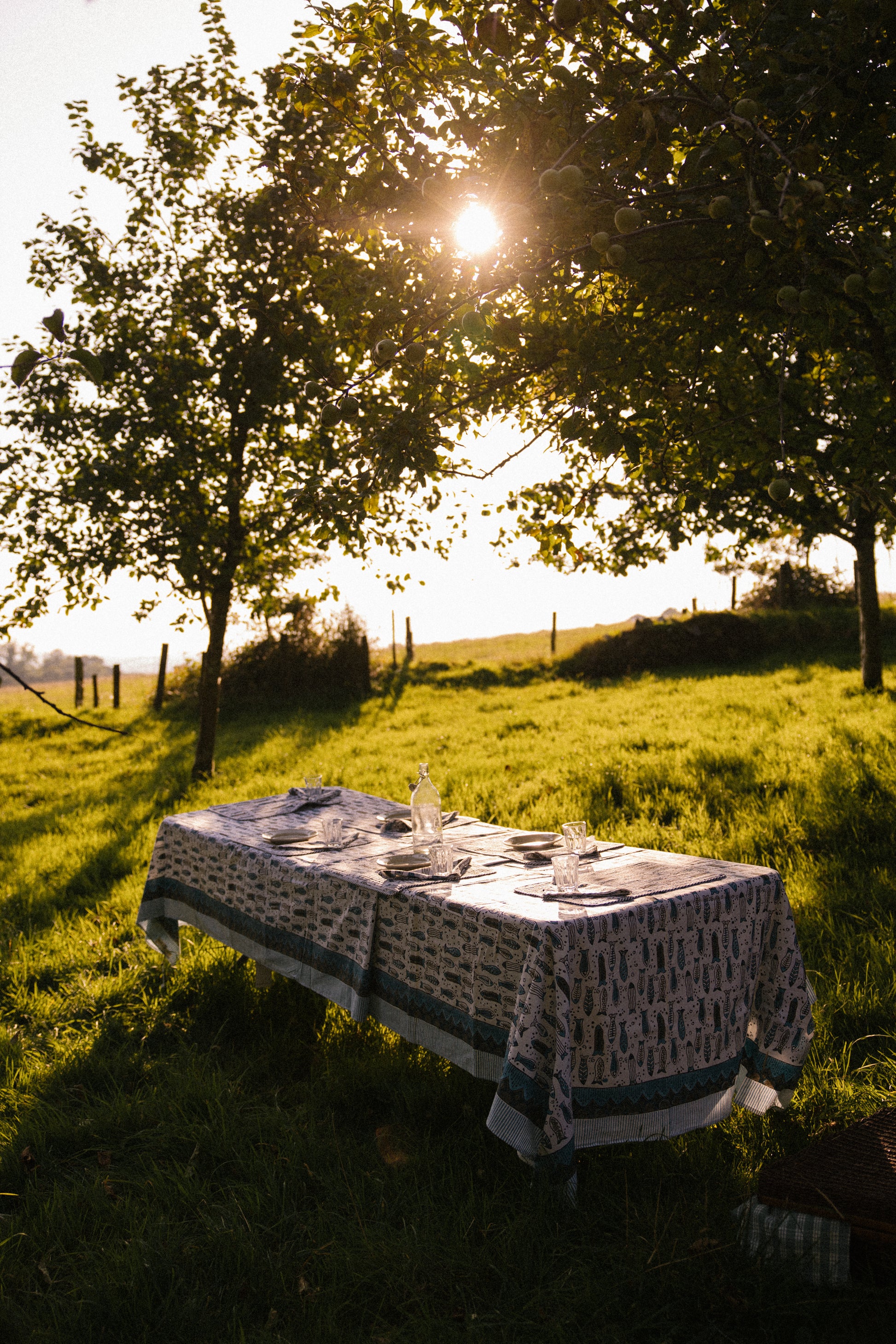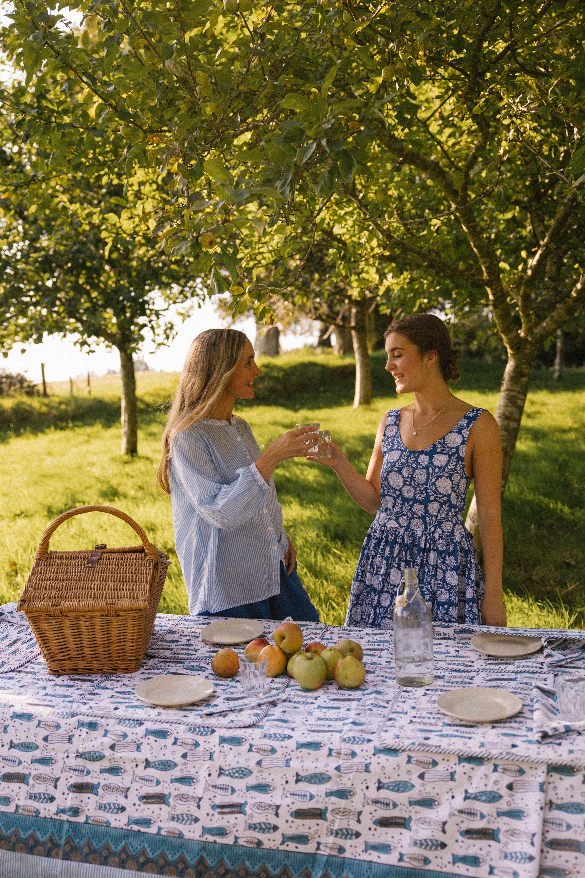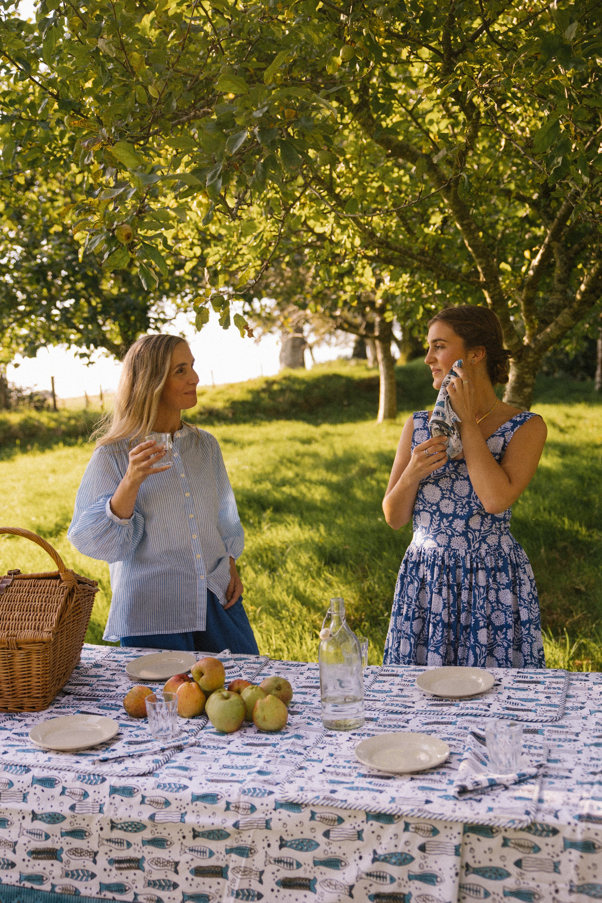 Our napkins are the perfect finishing touch to table spreads or for taking on summer picnics. Pair with our block printed tablecloths and placemats. Crafted from soft cotton and featuring a delightful flowing fish design in blue tones.