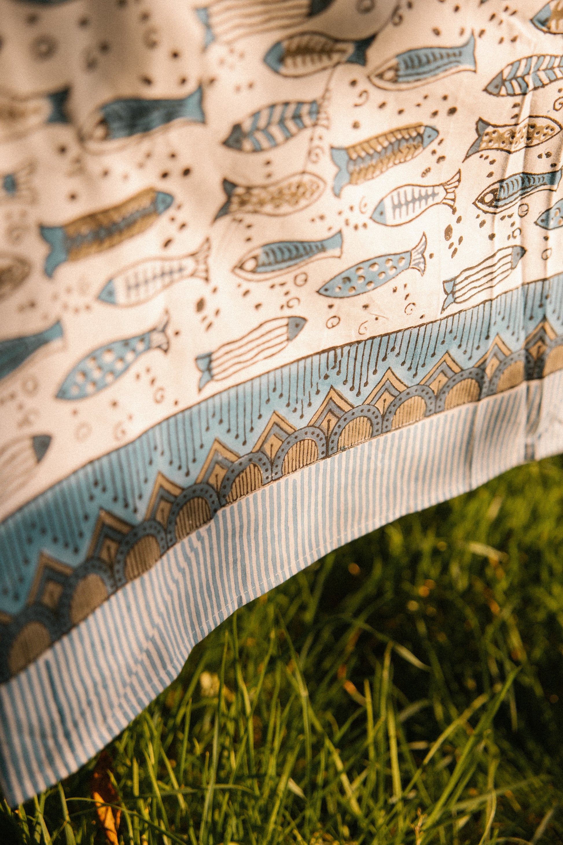 Made by skilled artisans which pass down this craft from generation to generation, we have used a form of Bagru printing which is a type of hand block printing which uses vegetables, mud and sand etc to create natural pigments which are kinder to the environment.