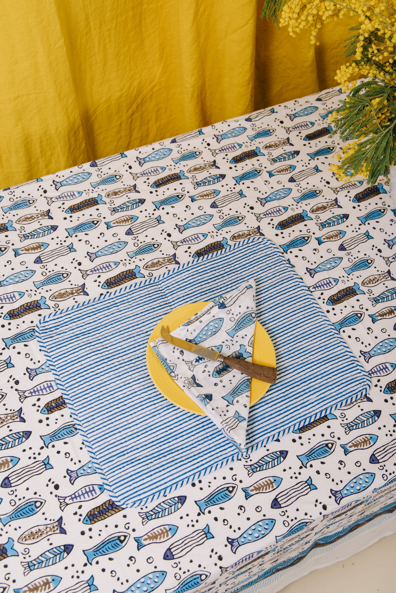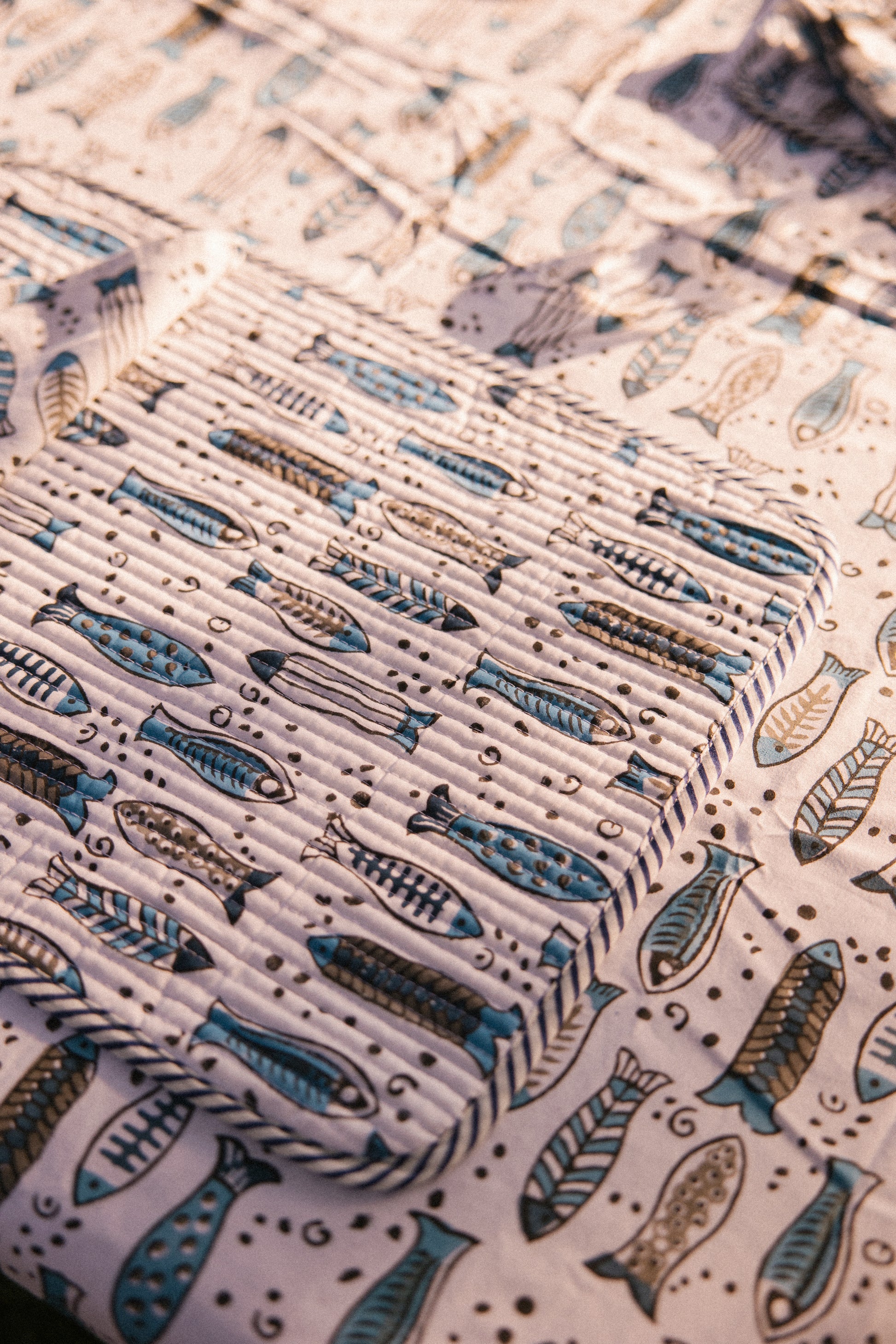 Made by skilled artisans which pass down this craft from generation to generation, we have used a form of Bagru printing which is a type of hand block printing which uses vegetables, mud and sand etc to create natural pigments which are kinder to the environment.