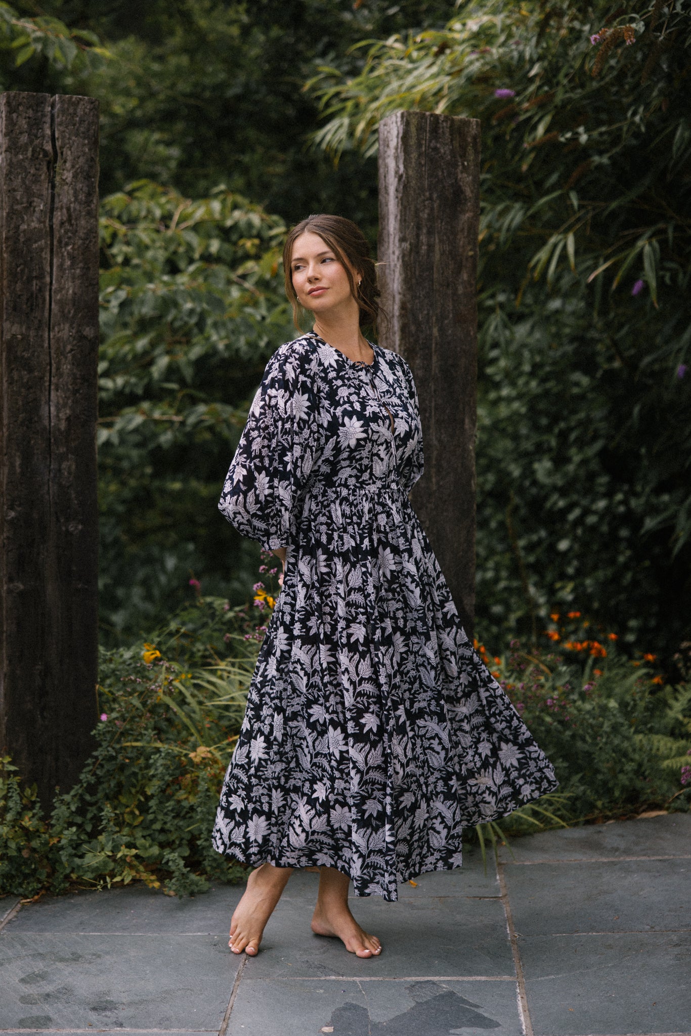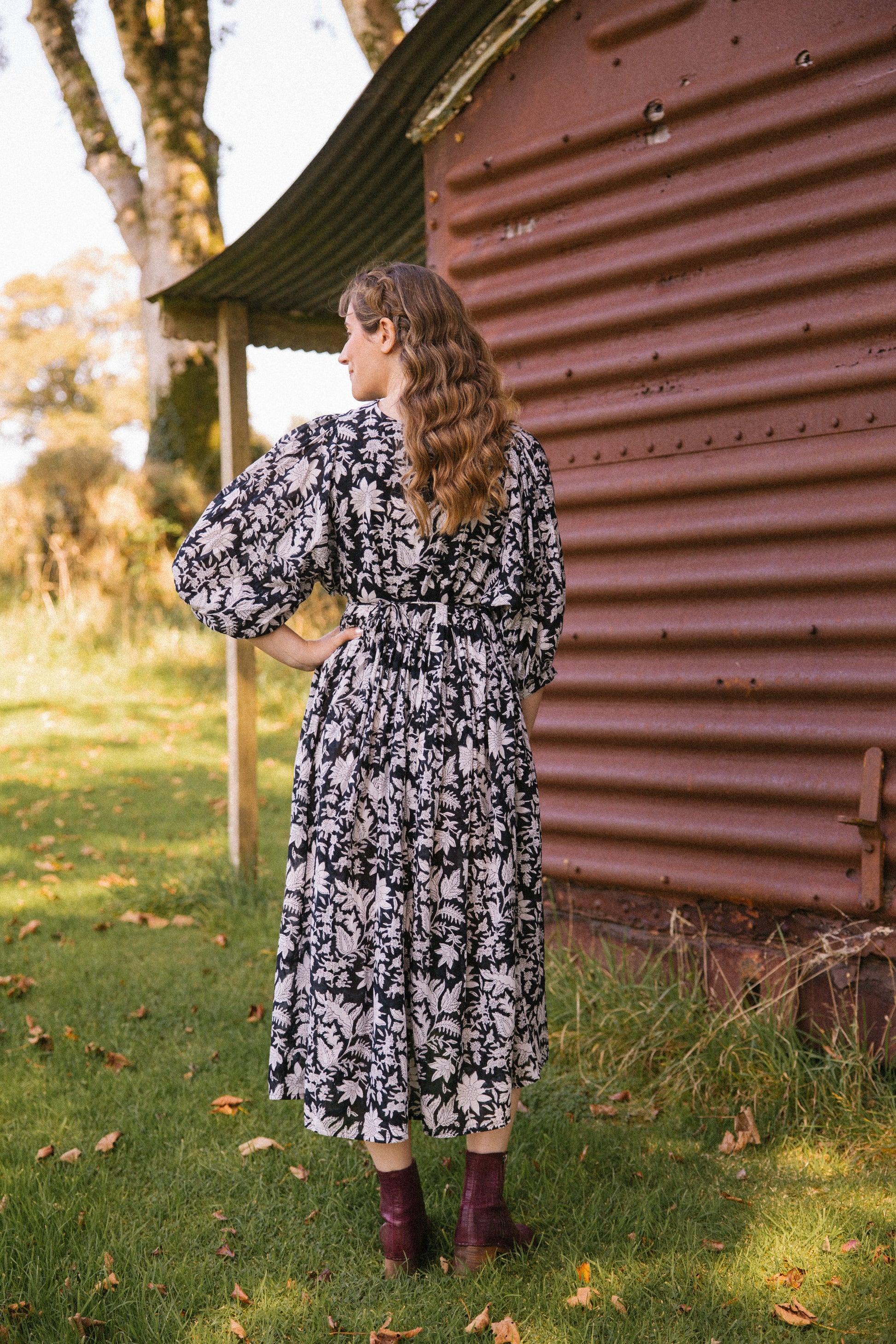 A delightful vintage inspired dress with romantic billowed sleeves.