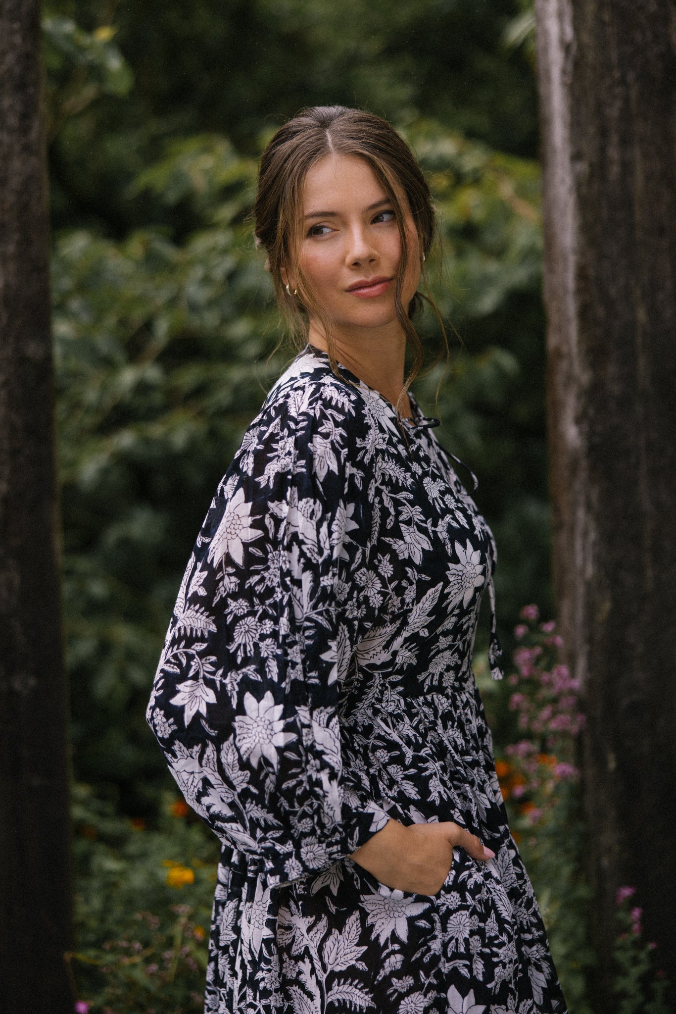 Made by skilled artisans which pass down this craft from generation to generation, we have used a form of Bagru printing which is a type of hand block printing which uses vegetables, mud and sand etc to create natural pigments which are kinder to the environment.