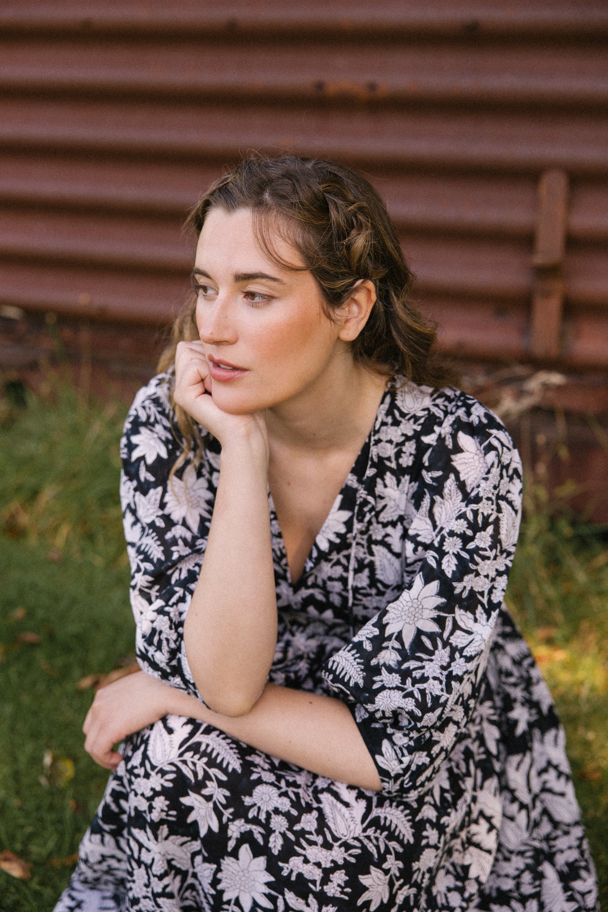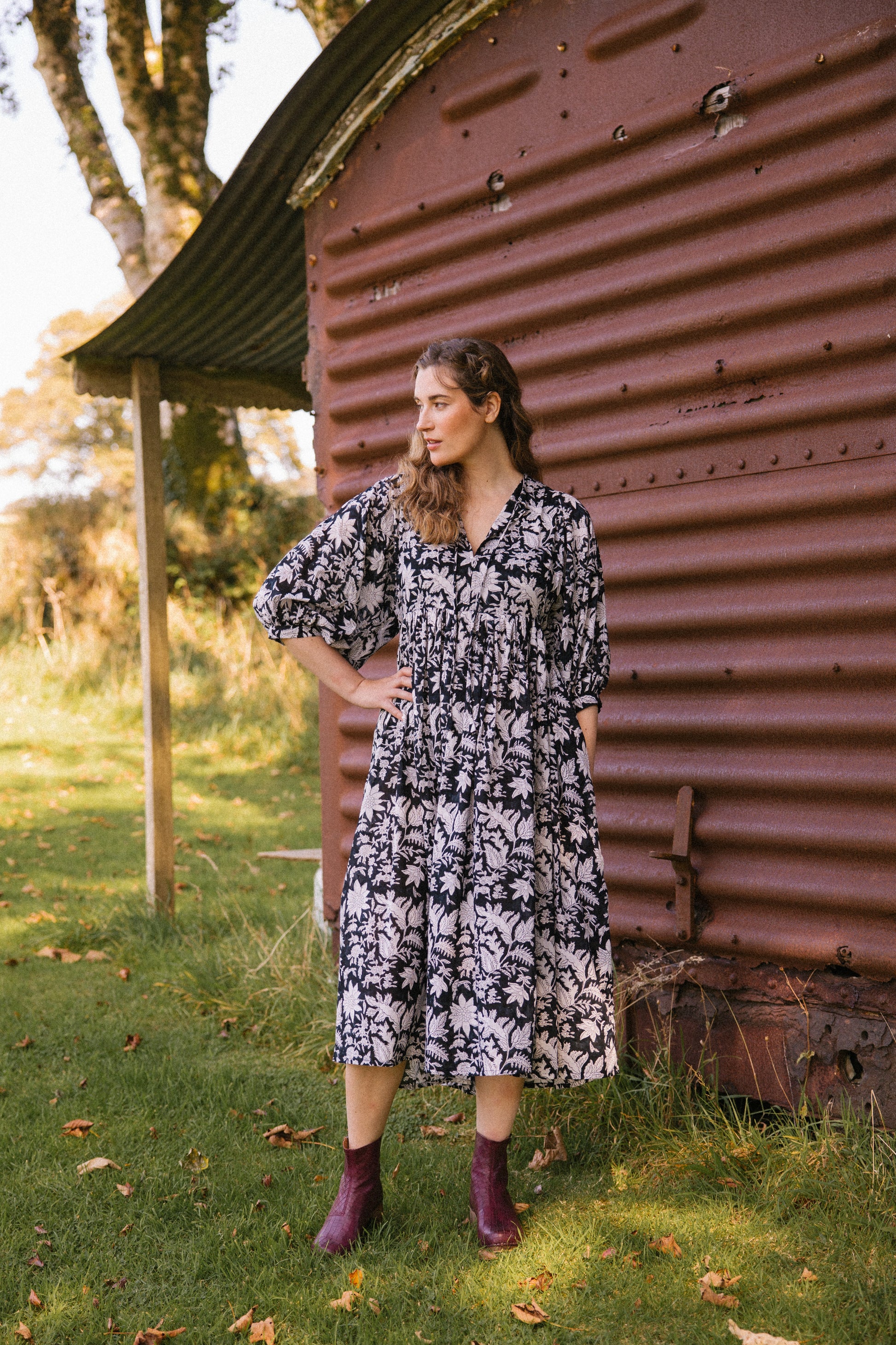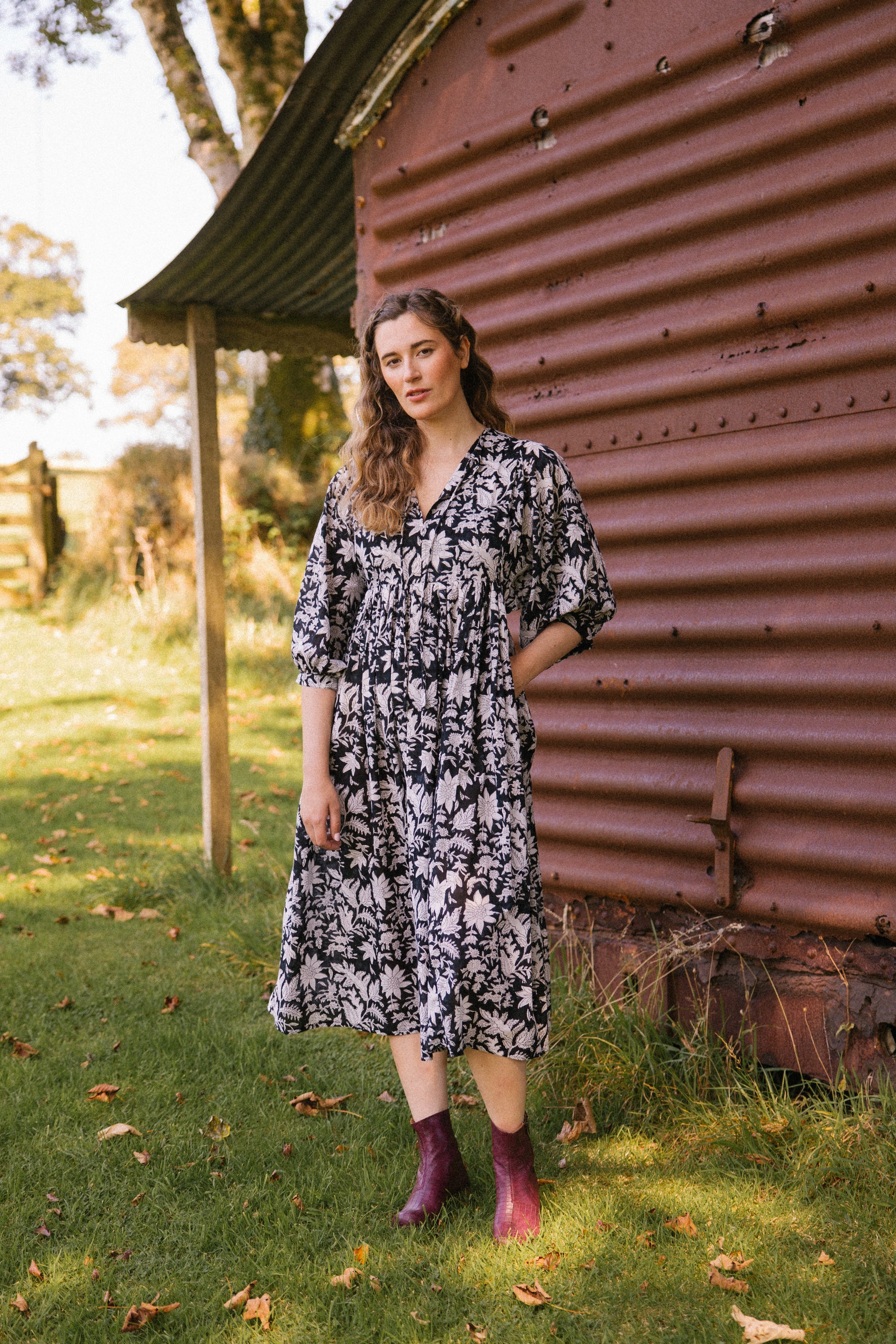 Gaia dress is a midi length, with side pockets made in 100% organic cotton.