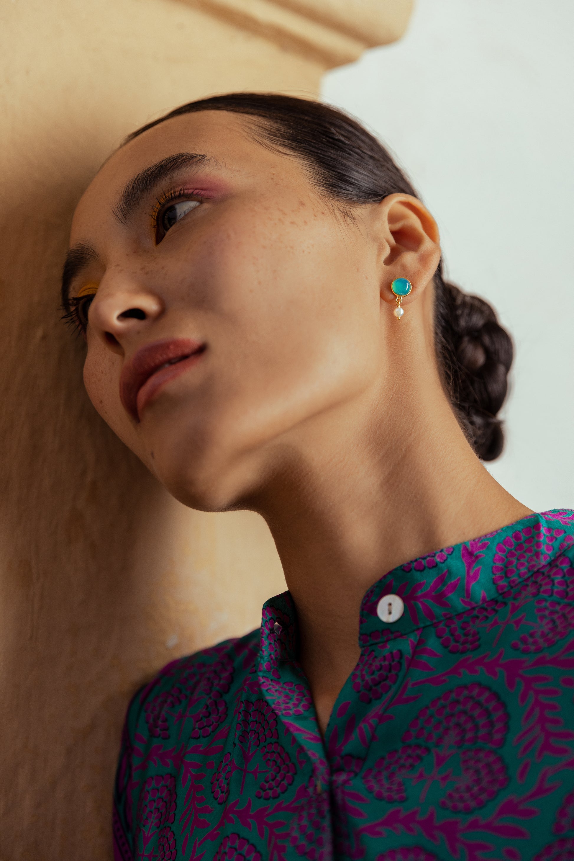 Pearl Drop Earrings Gold -Aqua Chalcedony
