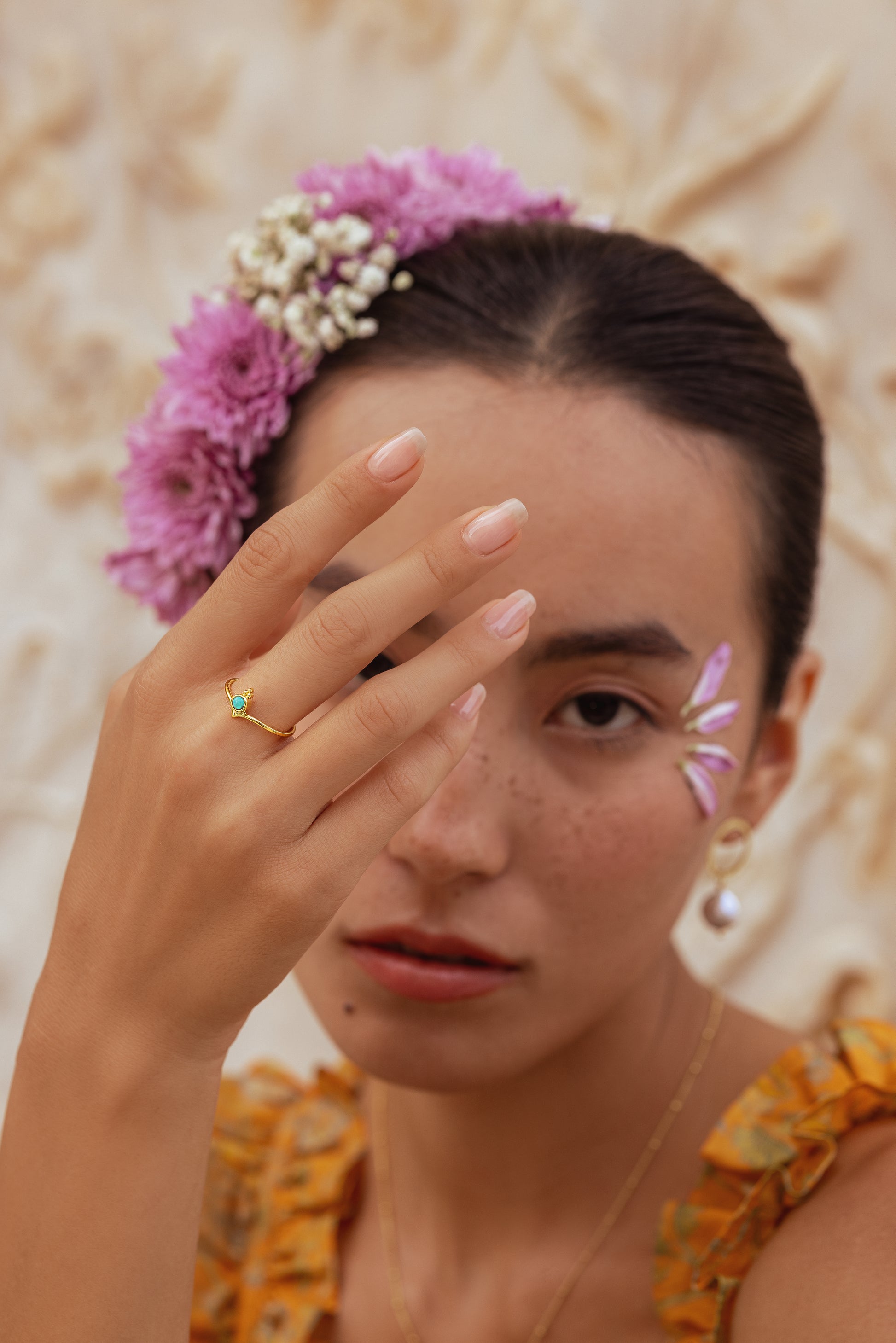 Gaia Wishbone Ring -Gold Arizona Turquoise