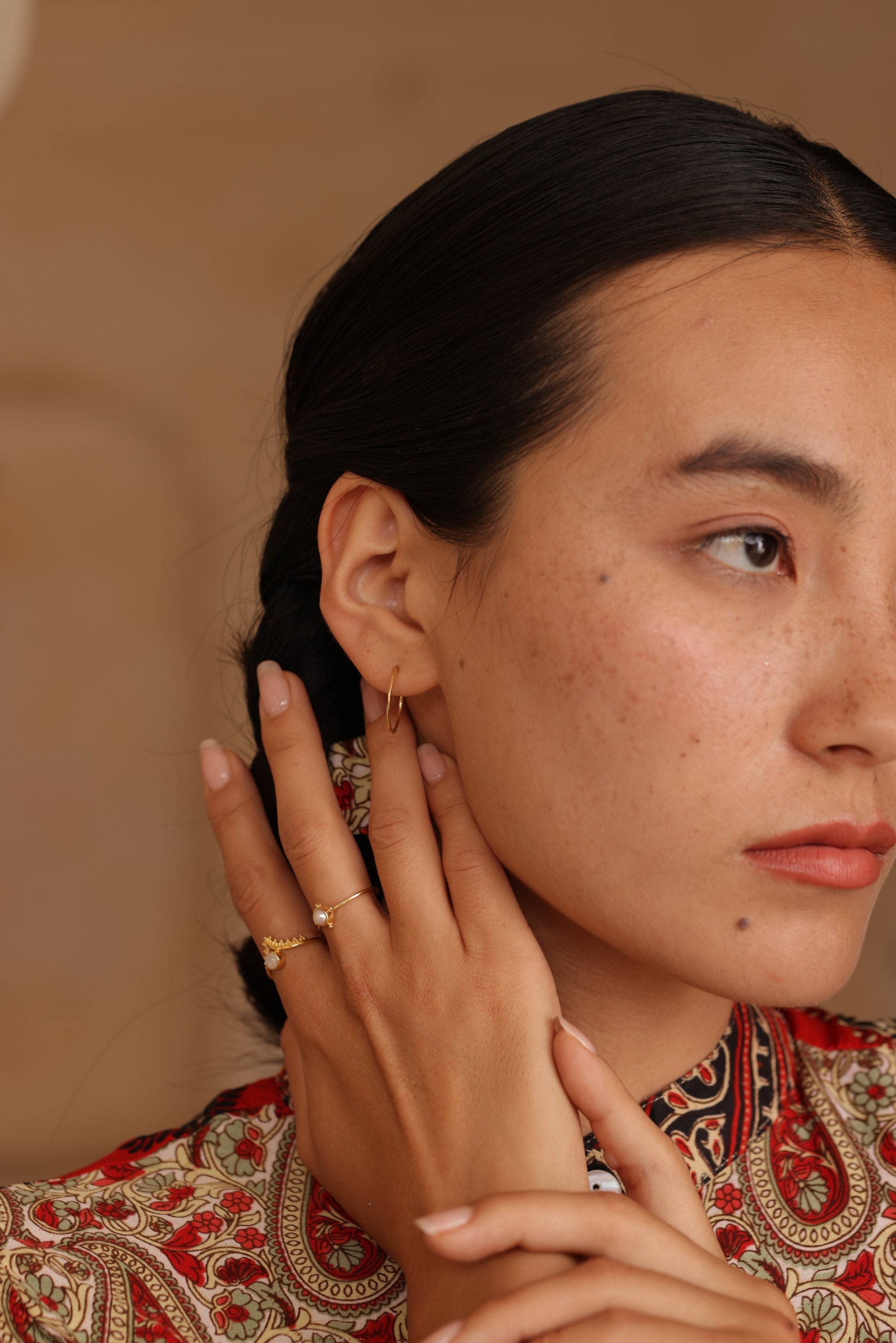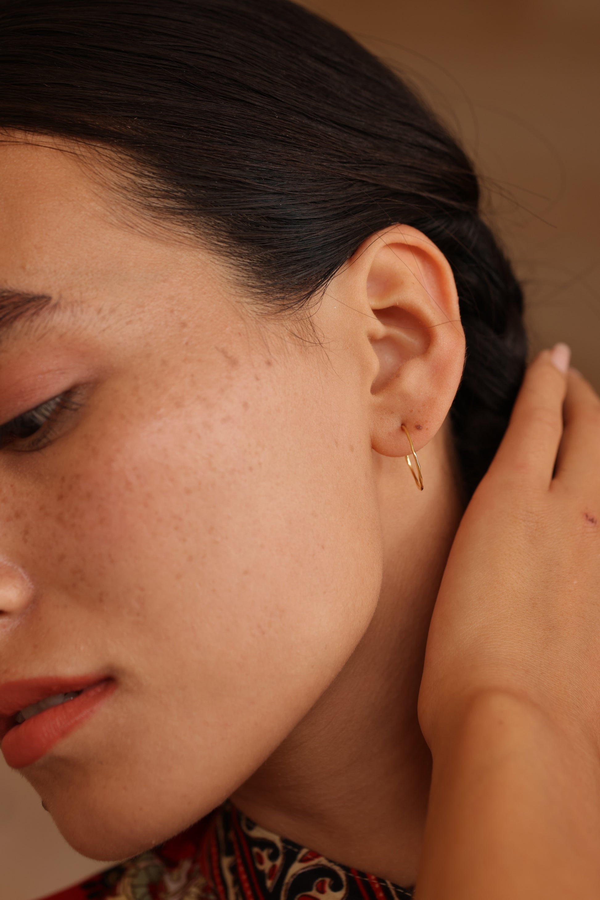 Inspired by a crescent moon in the night sky, our hoop earrings are a beautiful statement piece, perfect for everyday wear. They flaunt a hand hammered finished texture and glint in the sunlight.
