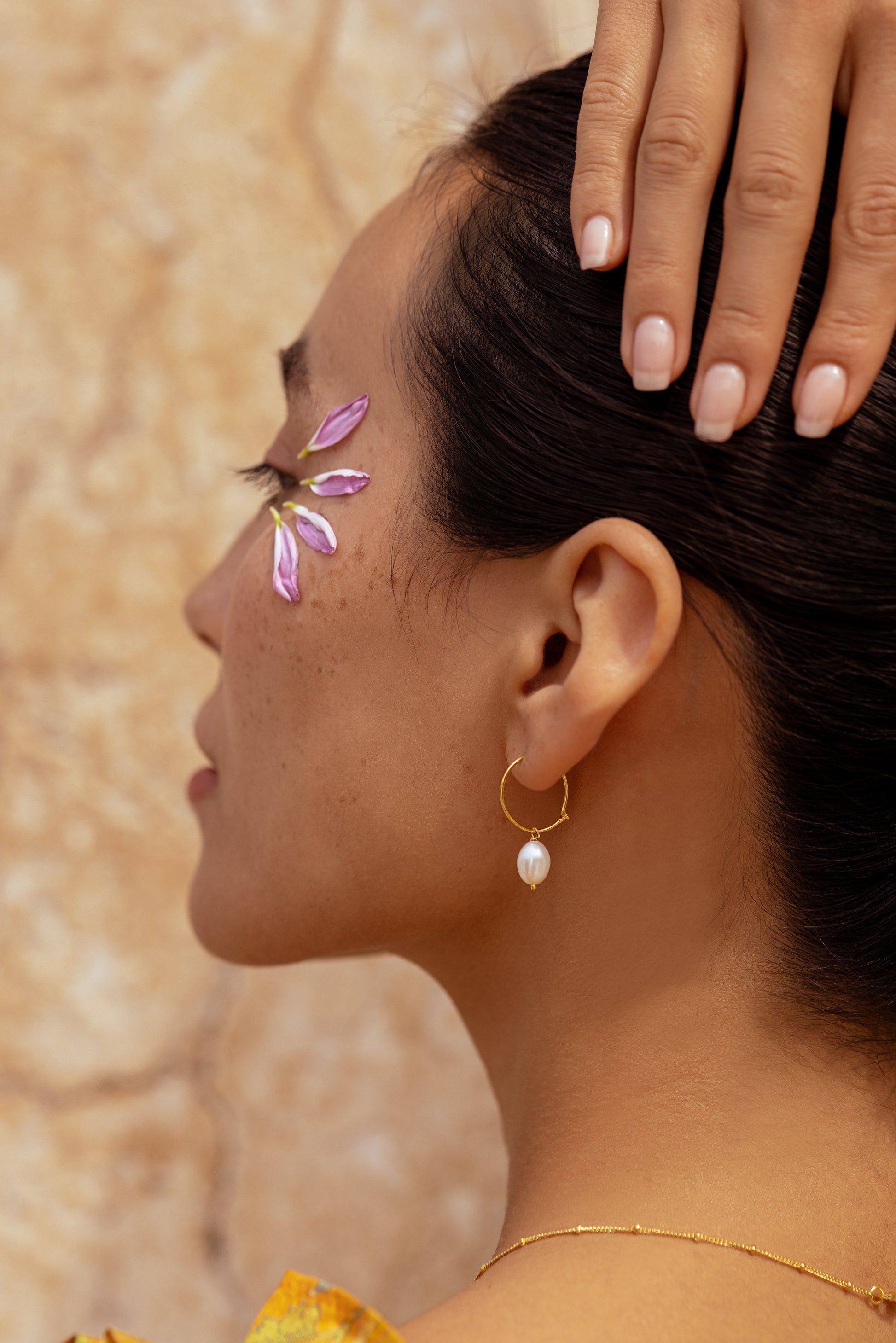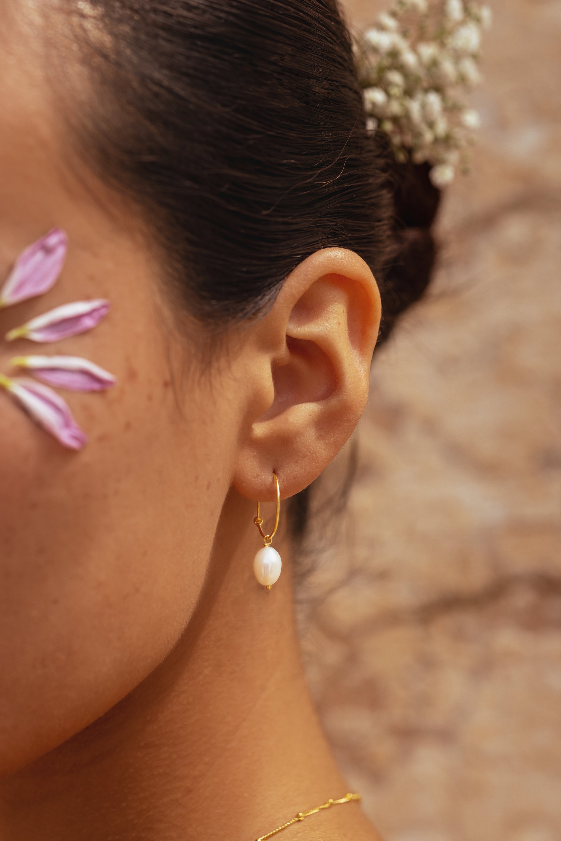 Dreams of clear waters and white sandy beaches, these utterly irresistible pearl hoops were meant for you. These hoops offer everyday simplicity and charm to every outfit.