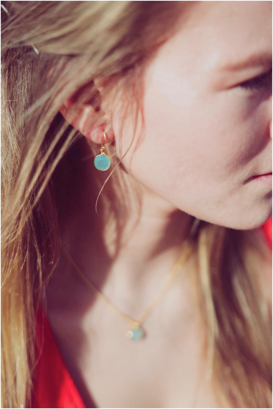 Gold Vermeil Hook Earrings in Aqua Chalcedony
