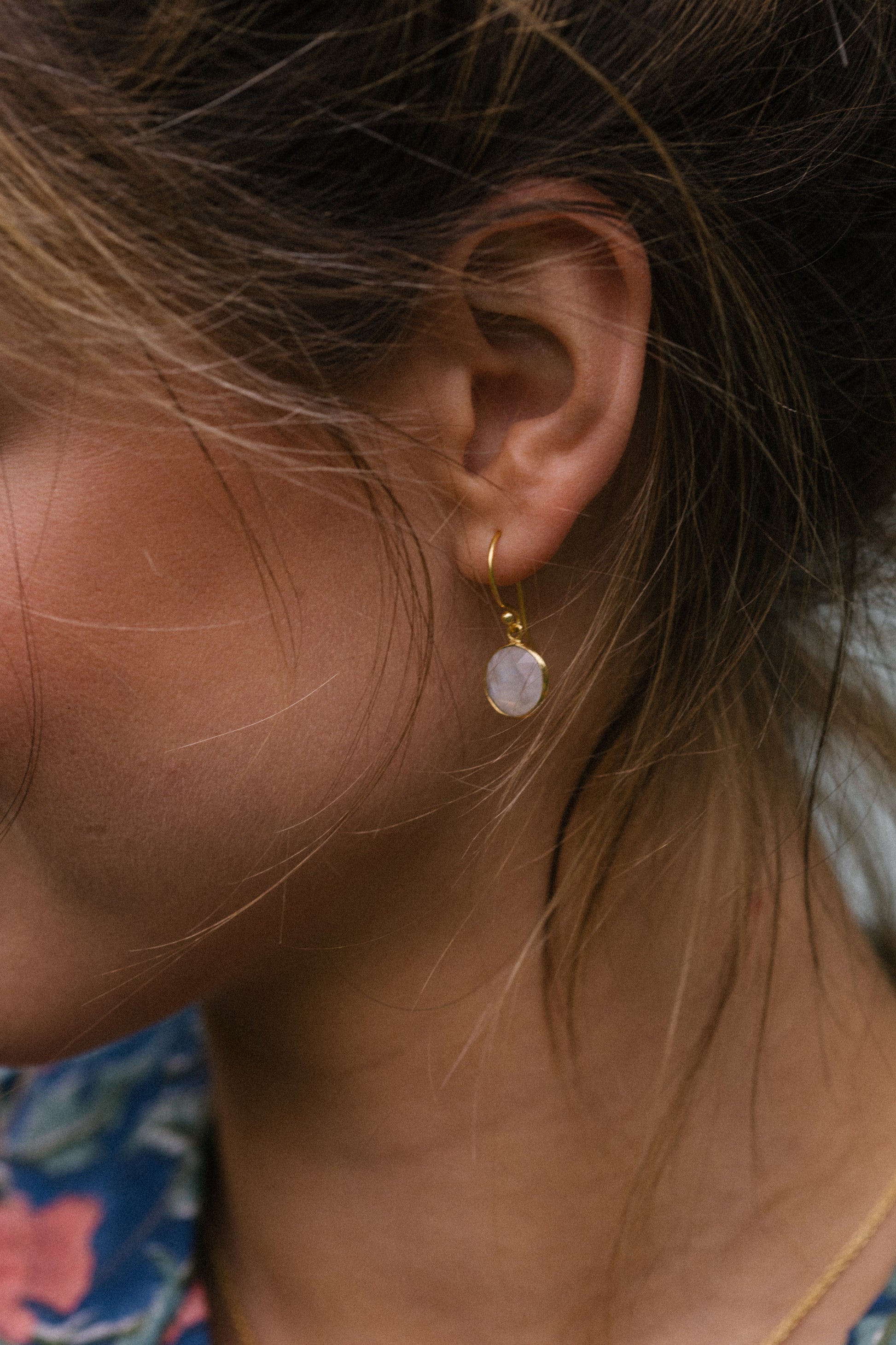 Gold Vermeil Hook Earrings in Rainbow Moonstone