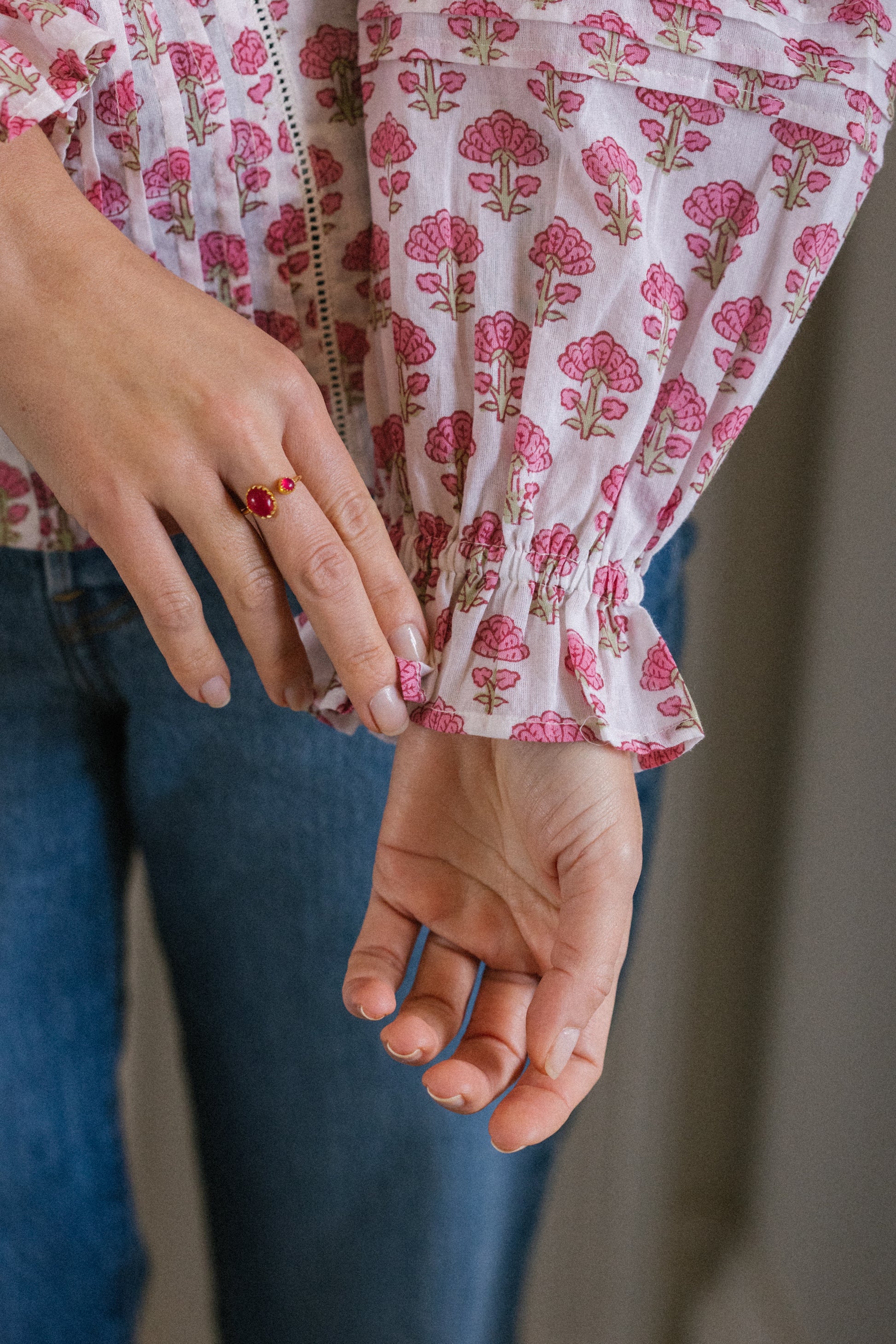 Gold Vermeil Two Stone Ring in Pink Chalcedony