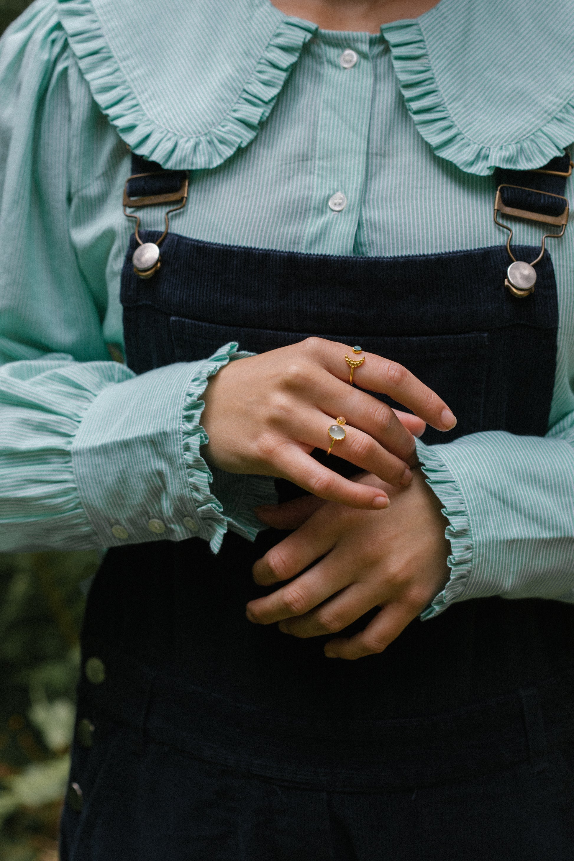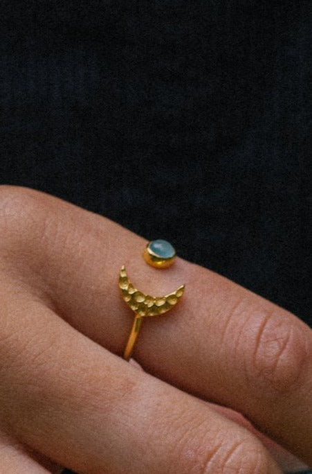 Gold Vermeil Moon Ring in Blue Chalcedony