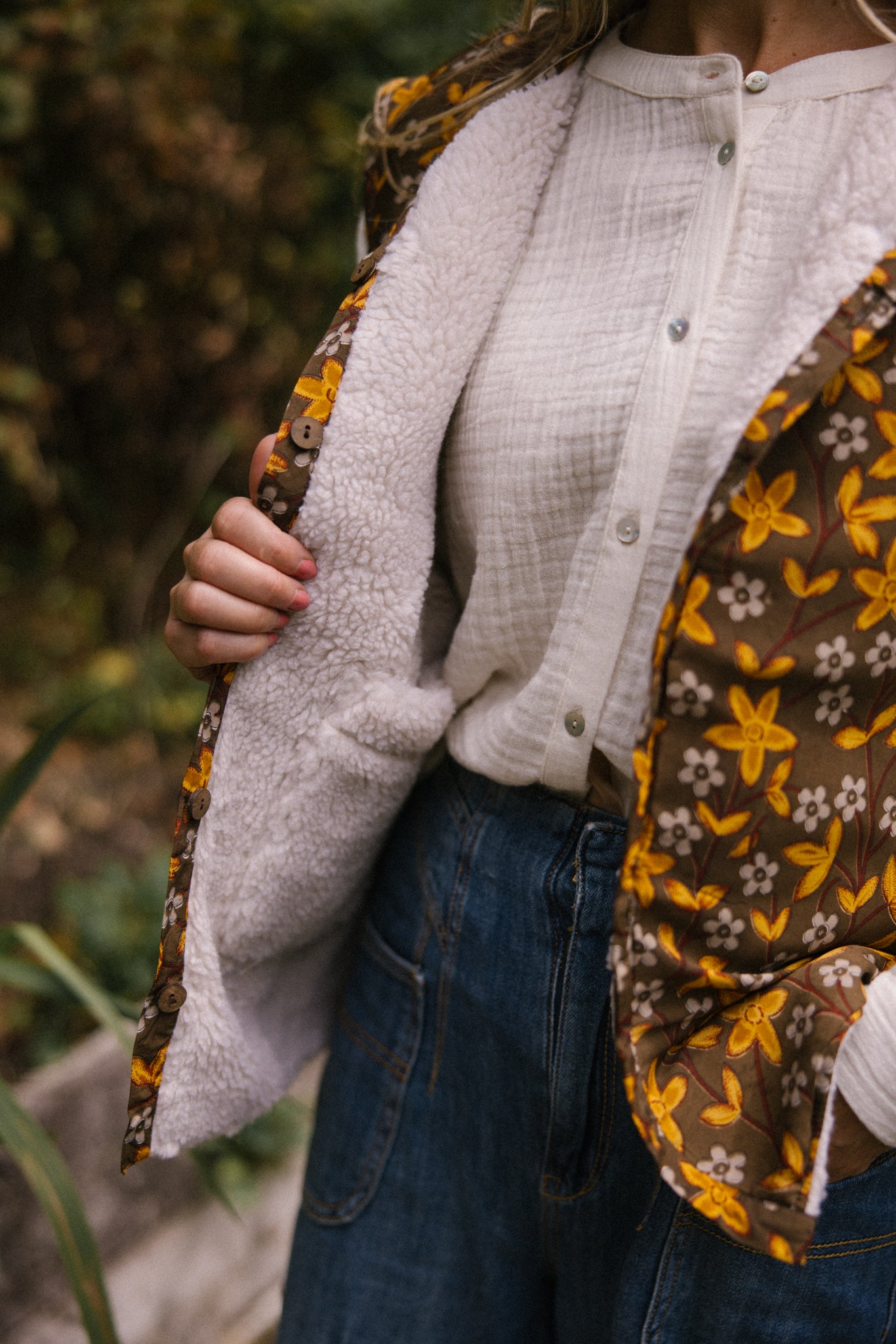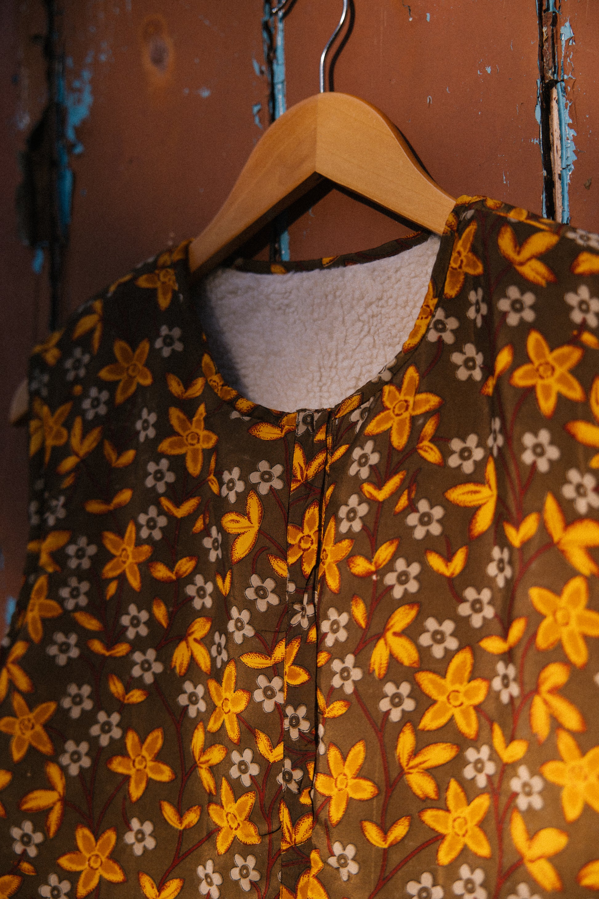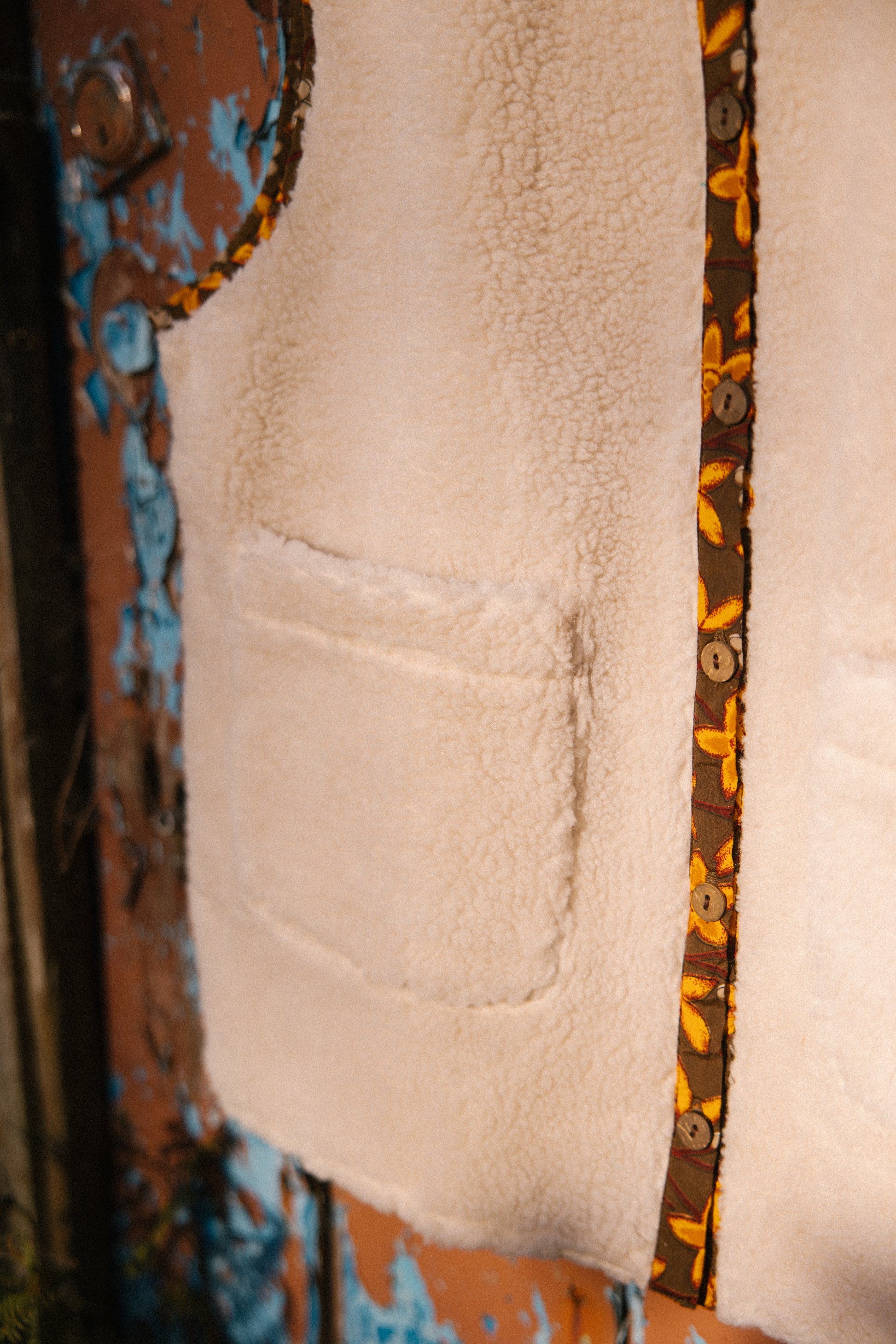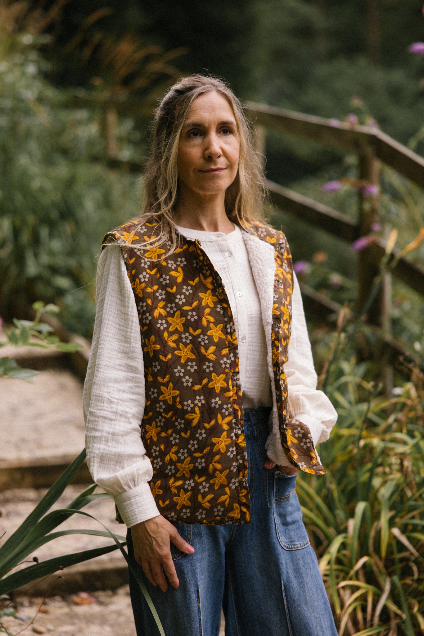 This will be your essential layering piece, whatever the season. Super snug with a soft teddy on one side and a unique vintage sari print on the reverse, this pretty gilet is the ultimate folk piece and hopefully one that will be treasured for years and then passed down to generations!