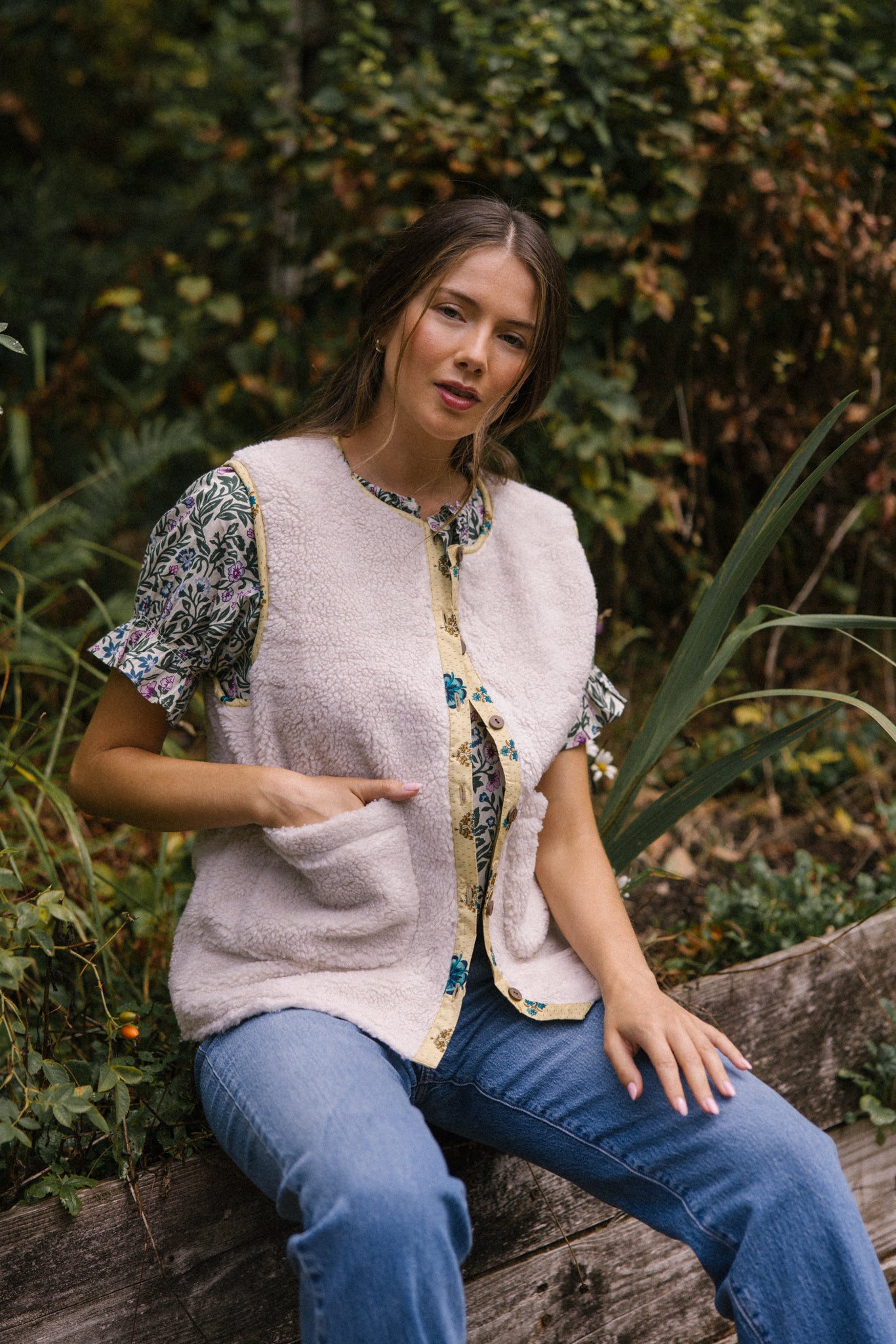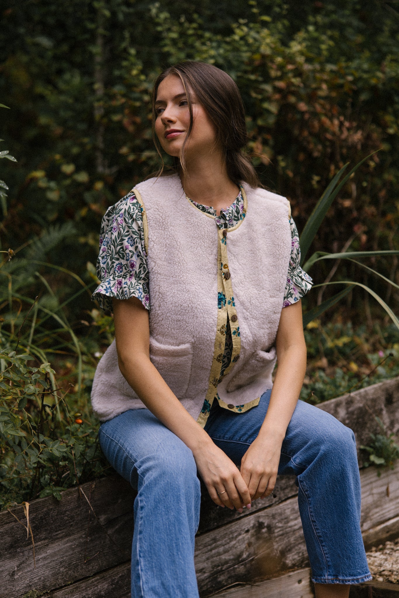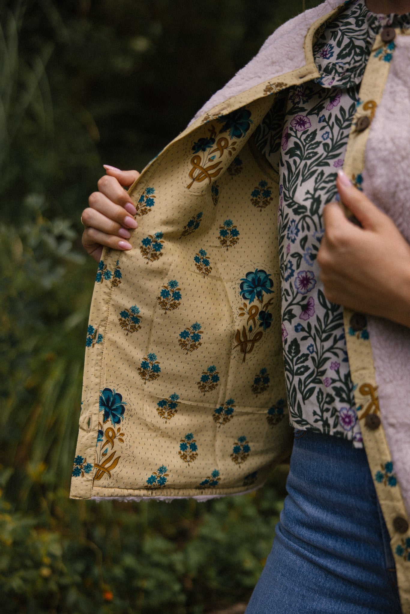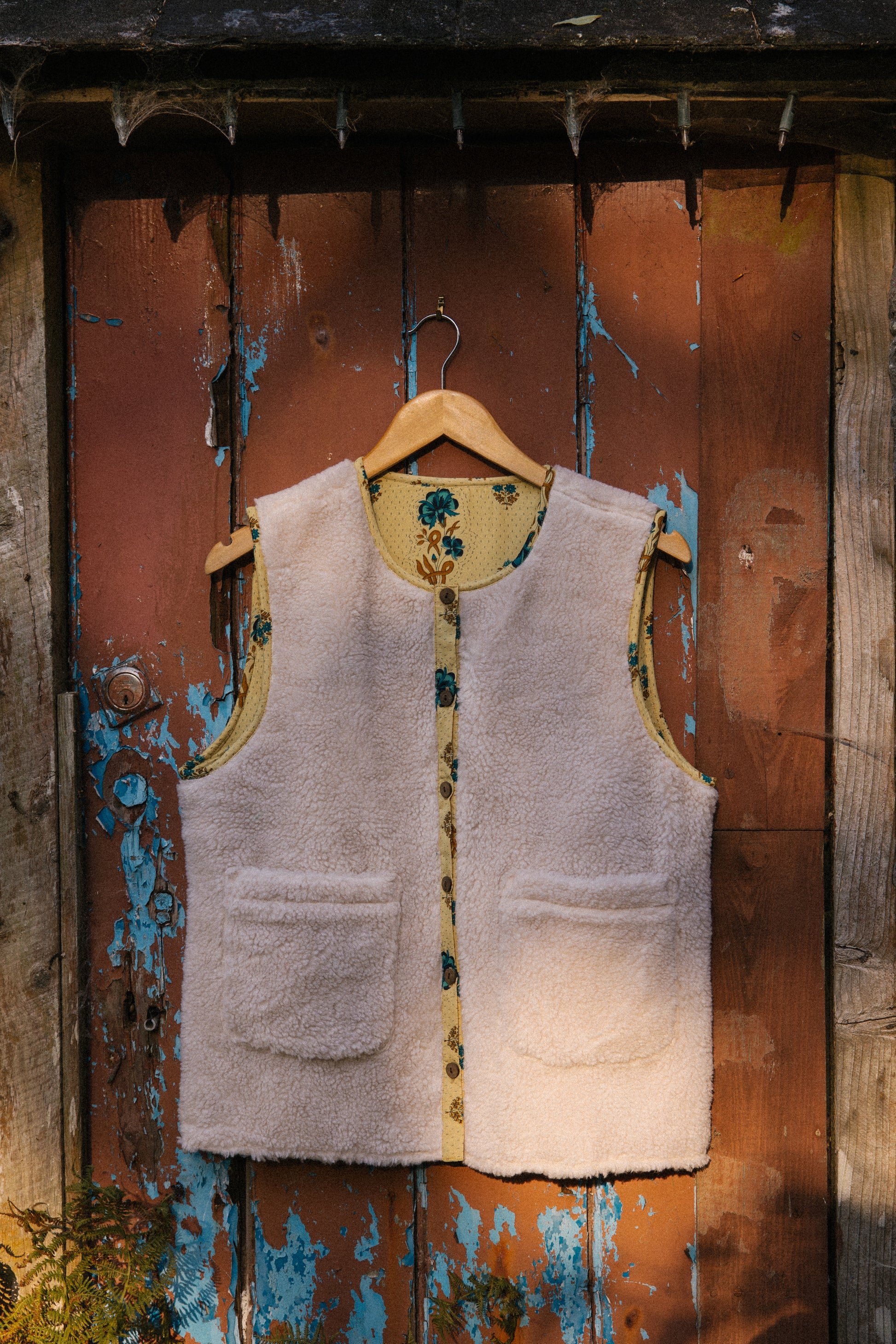 This will be your essential layering piece, whatever the season. Super snug with a soft teddy on one side and a unique vintage sari print on the reverse, this pretty gilet is the ultimate folk piece and hopefully one that will be treasured for years and then passed down to generations!