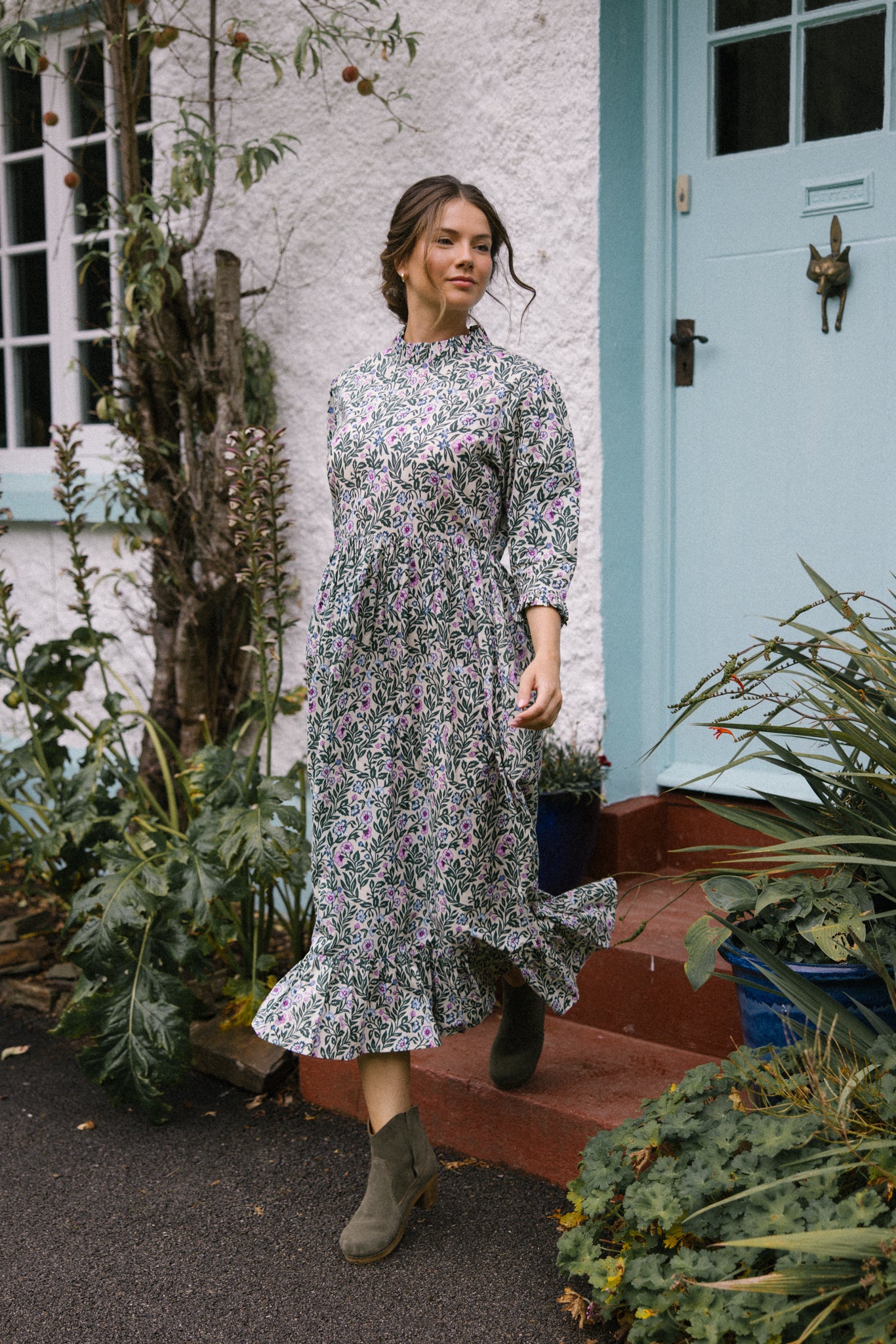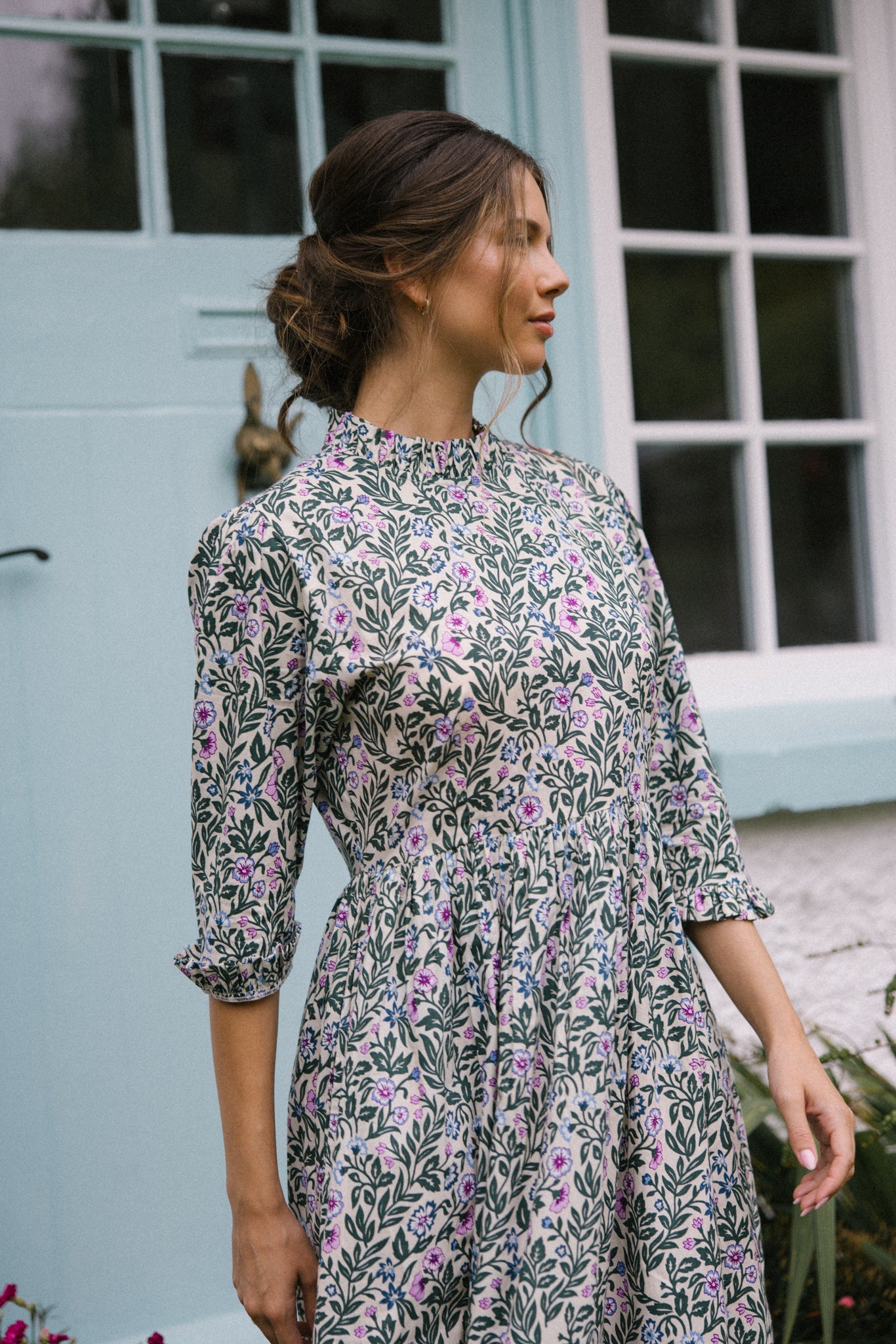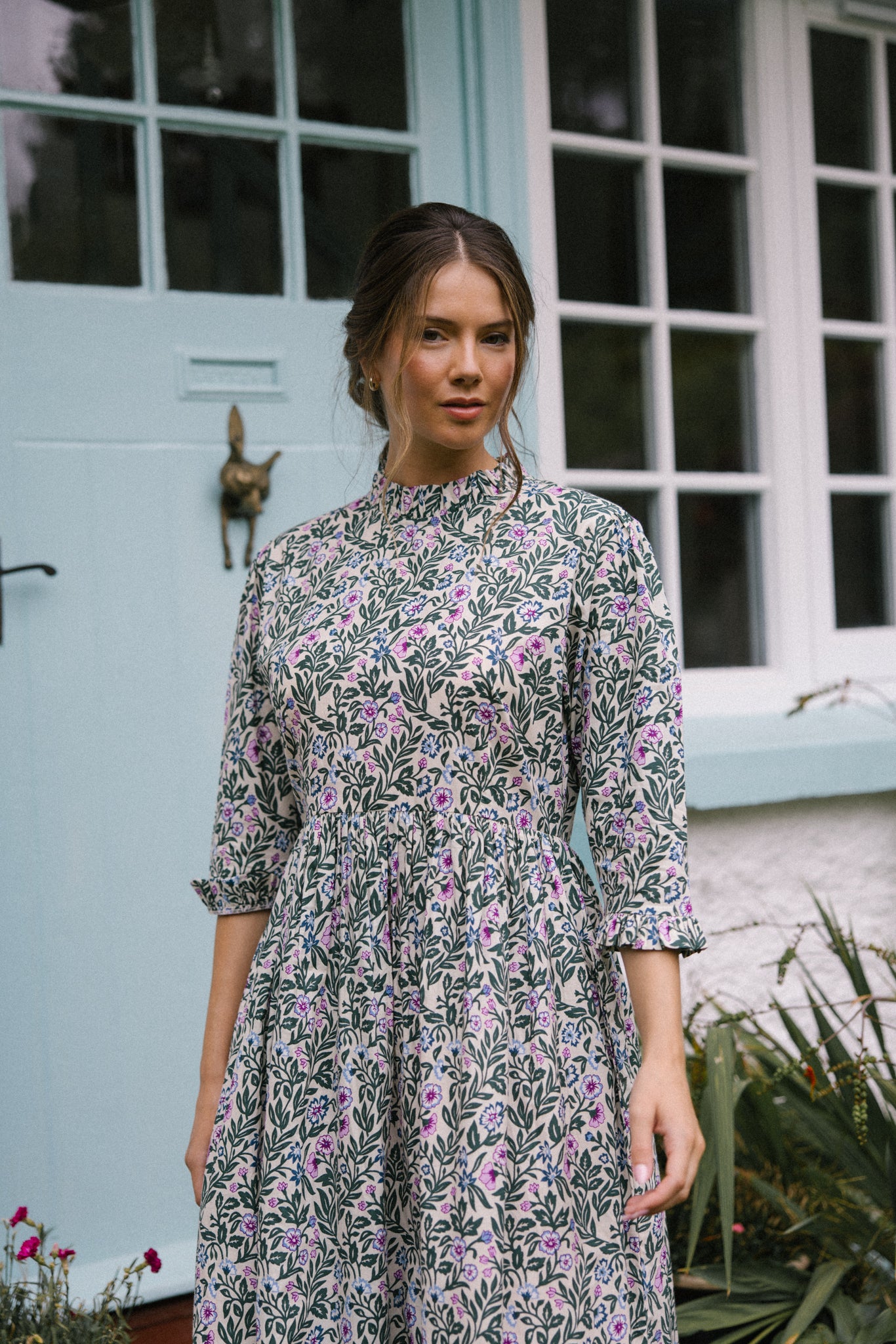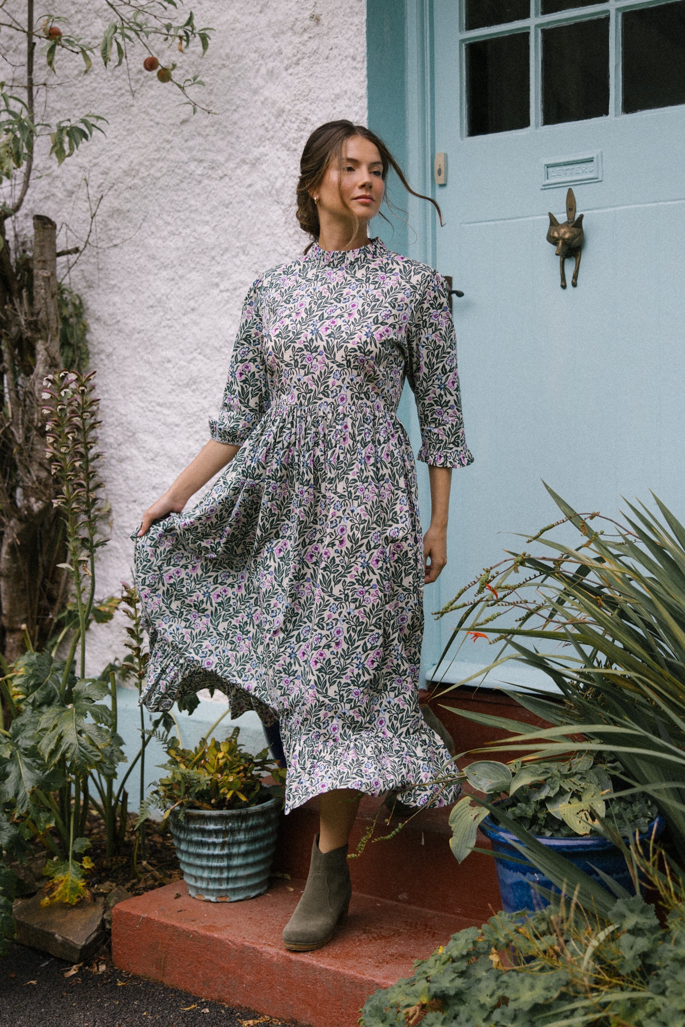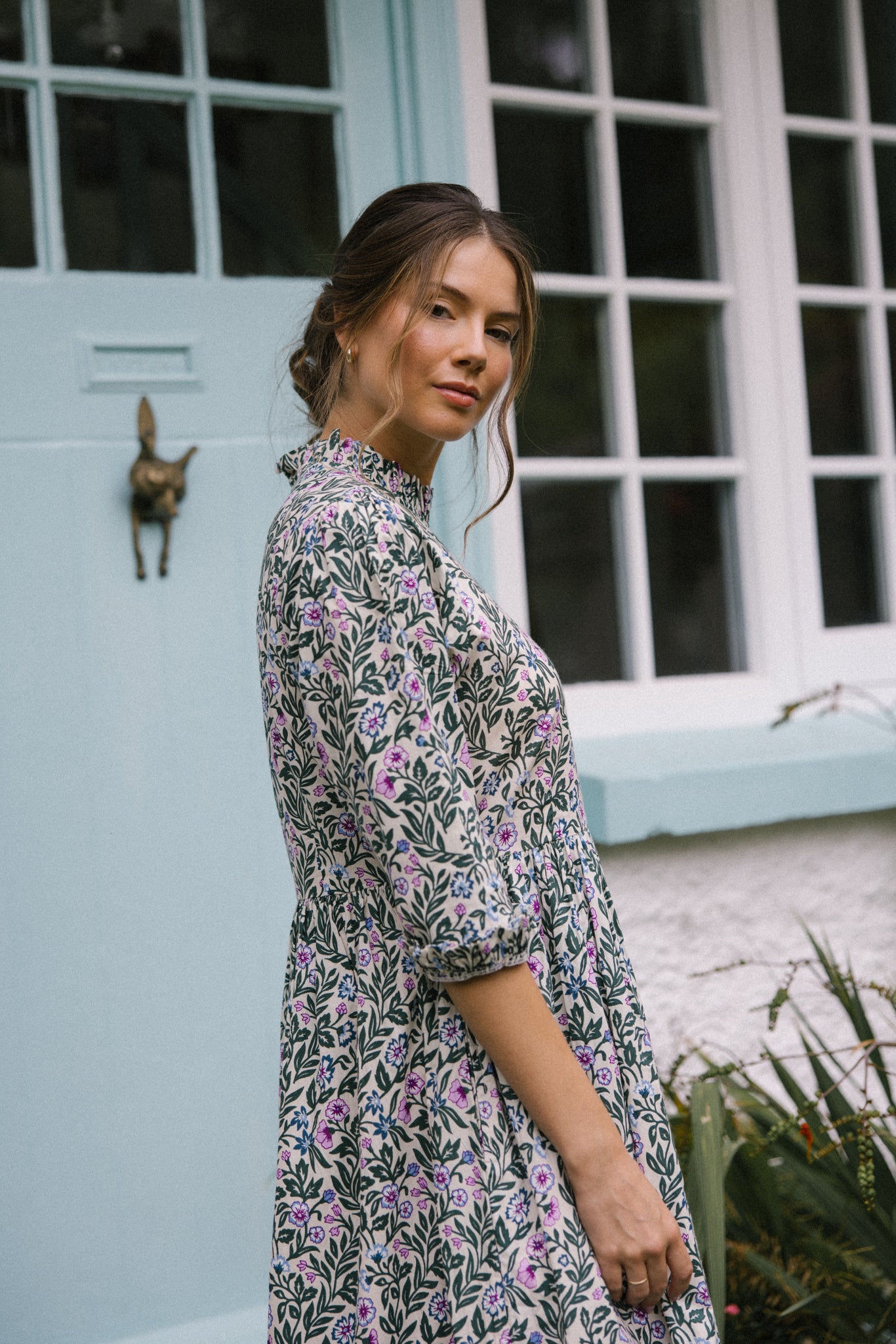 Lowen dress is very similar to our much loved Isabella that we had created a few seasons ago and due to so many requests. We have brought her back in our own exclusive Lowen print, she is skilfully tailored with a nod to vintage design.
